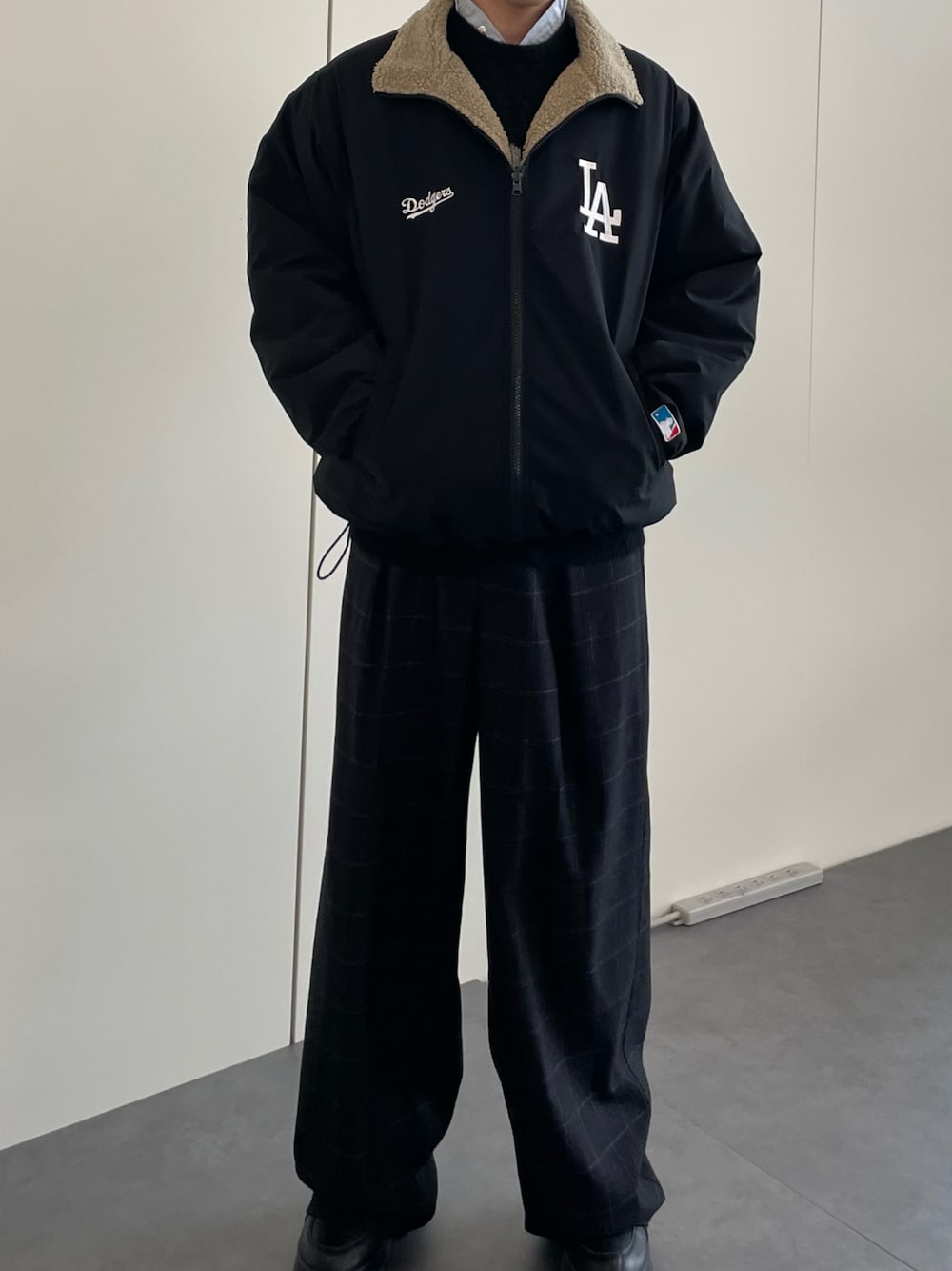 はくめぇ🍚🐏(MONO-MART)のブルゾン「MLB/メジャーリーグベースボール 別注 ワッペン刺繍 2WAYリバーシブル ドロストナイロン×ボア スタンドブルゾン」を使ったコーディネート