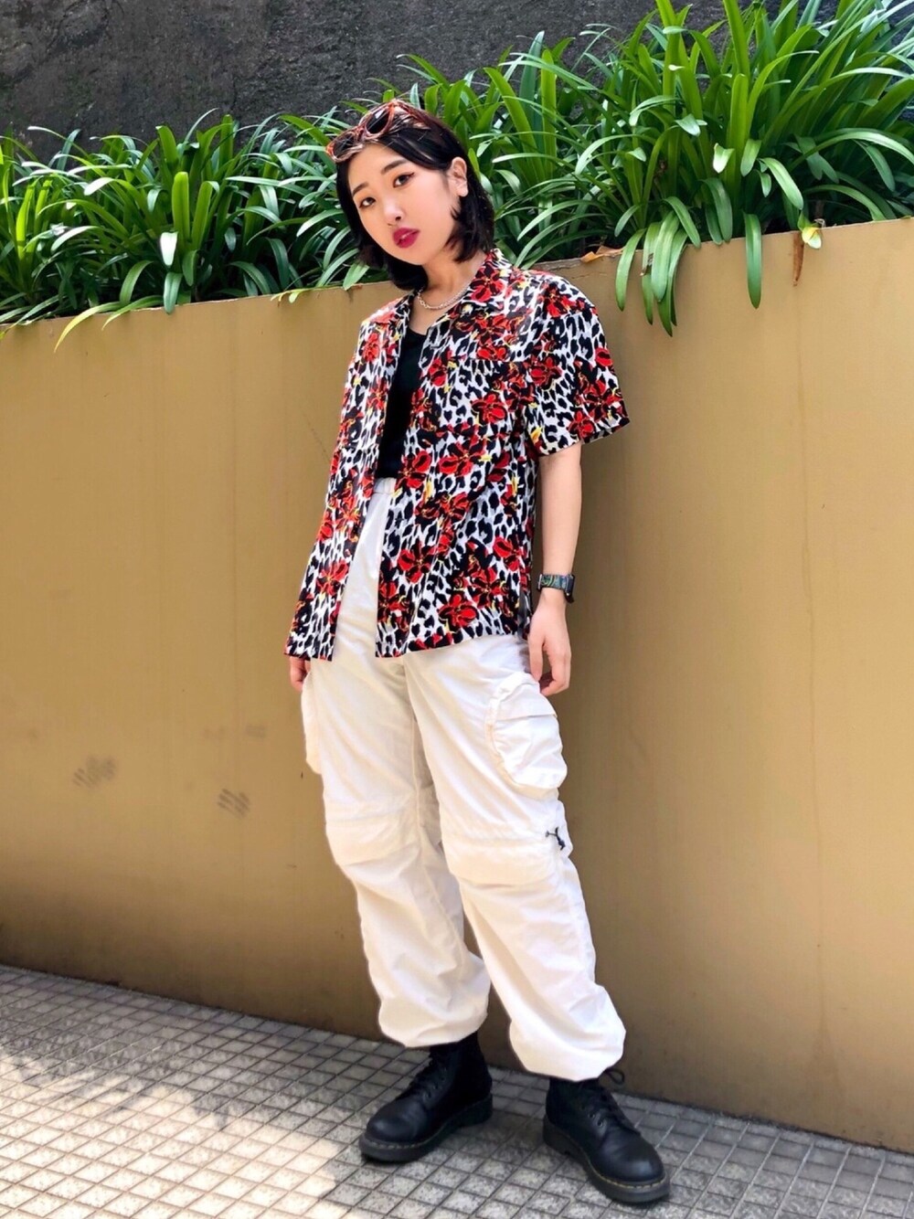 [身長158cm/SHIRT:S Size/TANK TOP:S Size/BOTTOM:XS Size] ⠀ •シャツ: シンプルなコーデにこの一枚でアクセントになれる夏っぽいのシャツ。 ⠀ •パンツ: 白いナイロンパンツは持ってたら絶対使えます。何でも合わせやすくておすすめ。 ⠀ •サングラス: 大人気のヒョウ柄でオシャレ感アップ! ⠀ - Q.欲しいのに、オンラインで売り切れている… A.店舗に在庫が有る場合、店舗通販でご購入可能です! ⠀ サイズ相談や店舗通販のお問い合わせは、 Instagram@cheeriobella<-こちらでお伺いいたします。