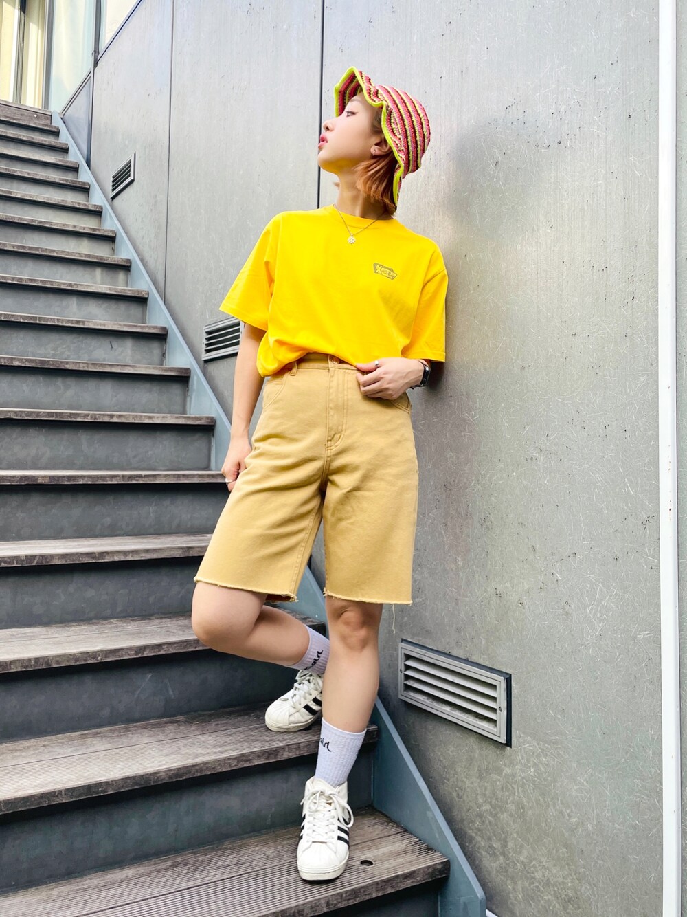 Insta@cheeriobella / 身長:158cm ➡︎オンラインで完売してるアイテムでも、 店舗在庫で送料無料でご自宅まで発送可能ですー❤︎ 詳しくはインスタDMでお伺いします! ⬇︎ 着用アイテム紹介 ⬇︎ (着用サイズは、下の「着用アイテム欄」をご覧下さいませ。) ⚫︎Tシャツ 夏らしいデザインと色味がとてもお気に入り(^ω^) デニムなどに合わせても可愛いと思います❤︎ ⚫︎ハーフパンツ 定番のハーフパンツです! 何でも合わせやすく、スニーカーやマーチンなどにも似合います(^。^) ⚫︎ハット 流行りのニット素材で夏らしいカラーリング❤︎ シンプルなコーデにアクセントになれるアイテムです♪