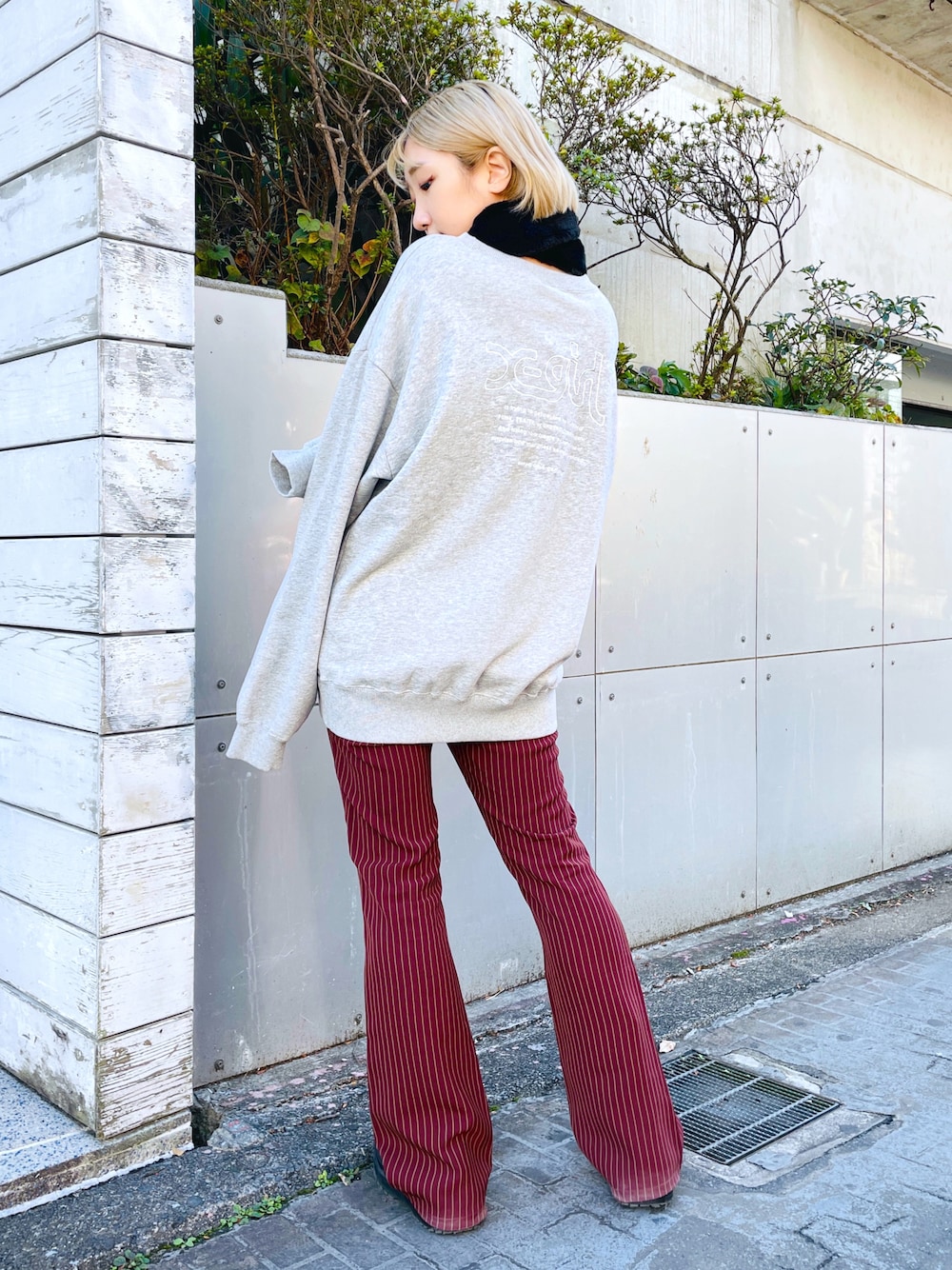 イ ヒョンジンのスウェット「WEB限定|WORDS LOGO WIDE CREW SWEAT TOP」を使ったコーディネート