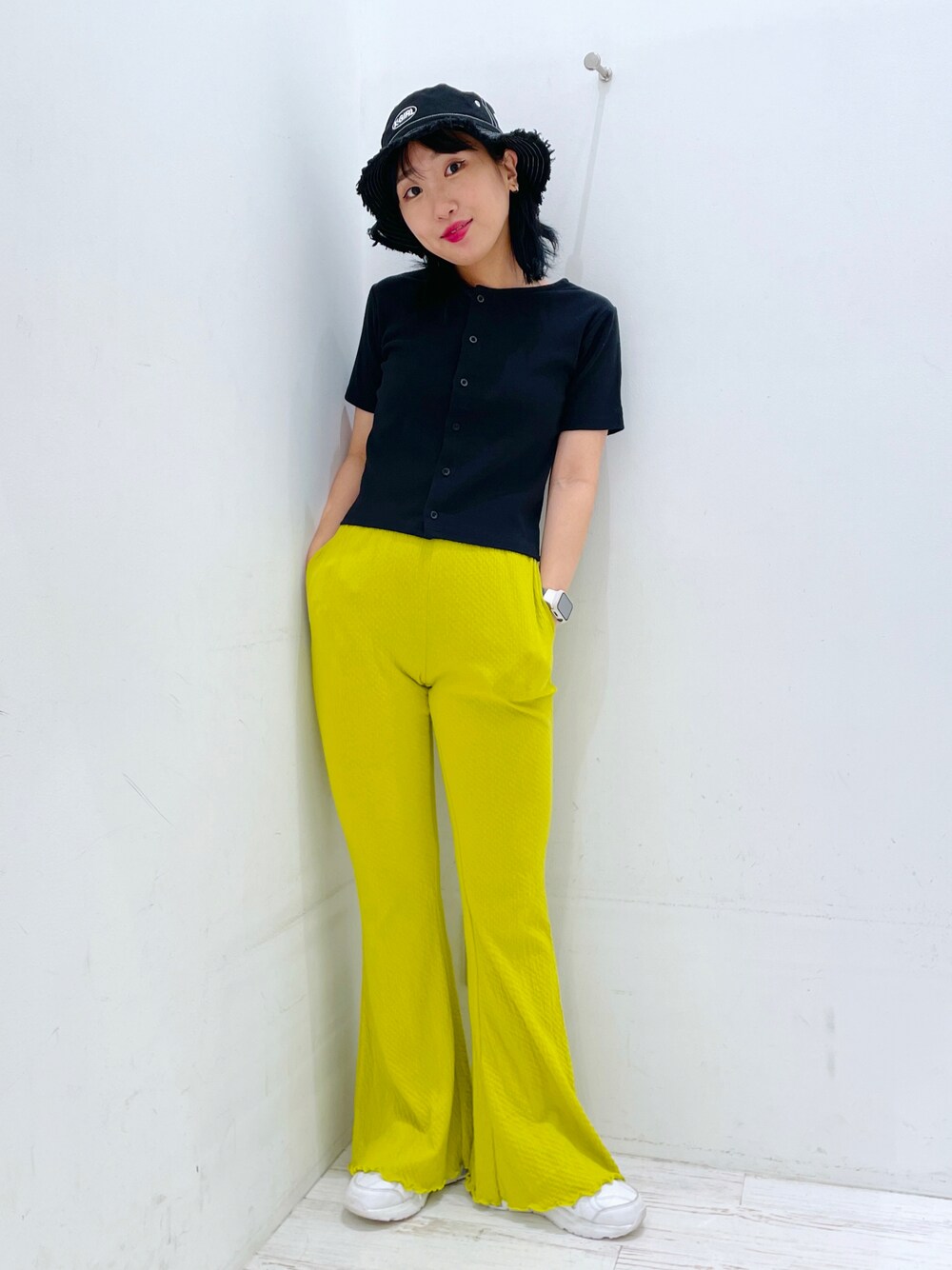 イ ヒョンジンのその他パンツ「LETTUCE EDGE FLARE EASY PANTS/フレアパンツ ウエストゴムパンツ カラーパンツ イージーパンツ」を使ったコーディネート