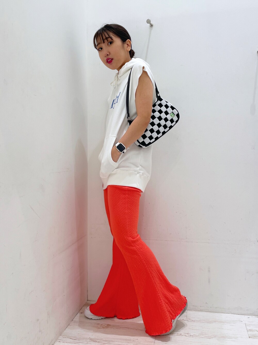イ ヒョンジンのその他パンツ「LETTUCE EDGE FLARE EASY PANTS/フレアパンツ ウエストゴムパンツ カラーパンツ イージーパンツ」を使ったコーディネート