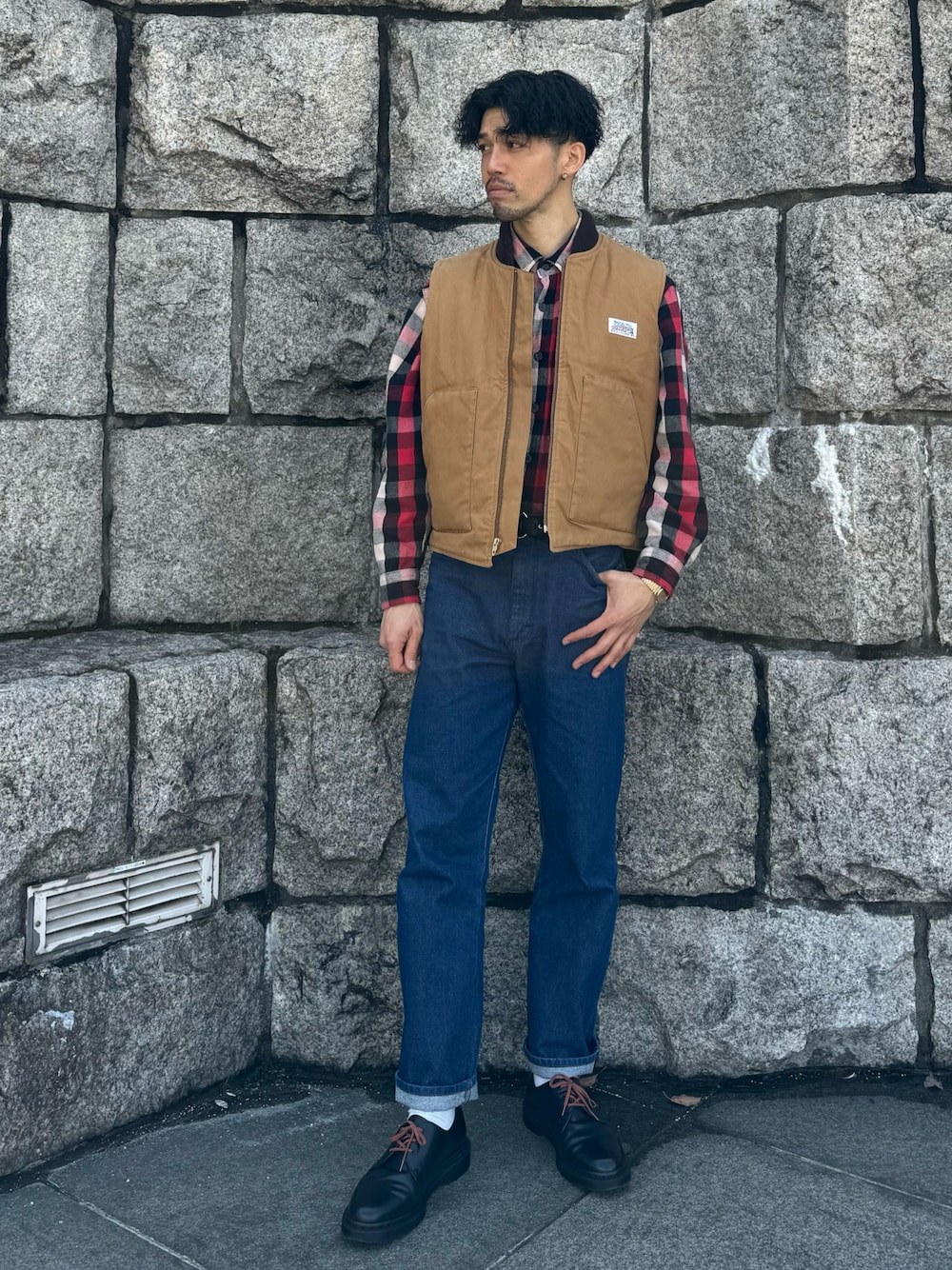 ダックベストを着たくて春コーデ🇺🇸 これにハットとブーツやったらカウボーイスタイルやん笑