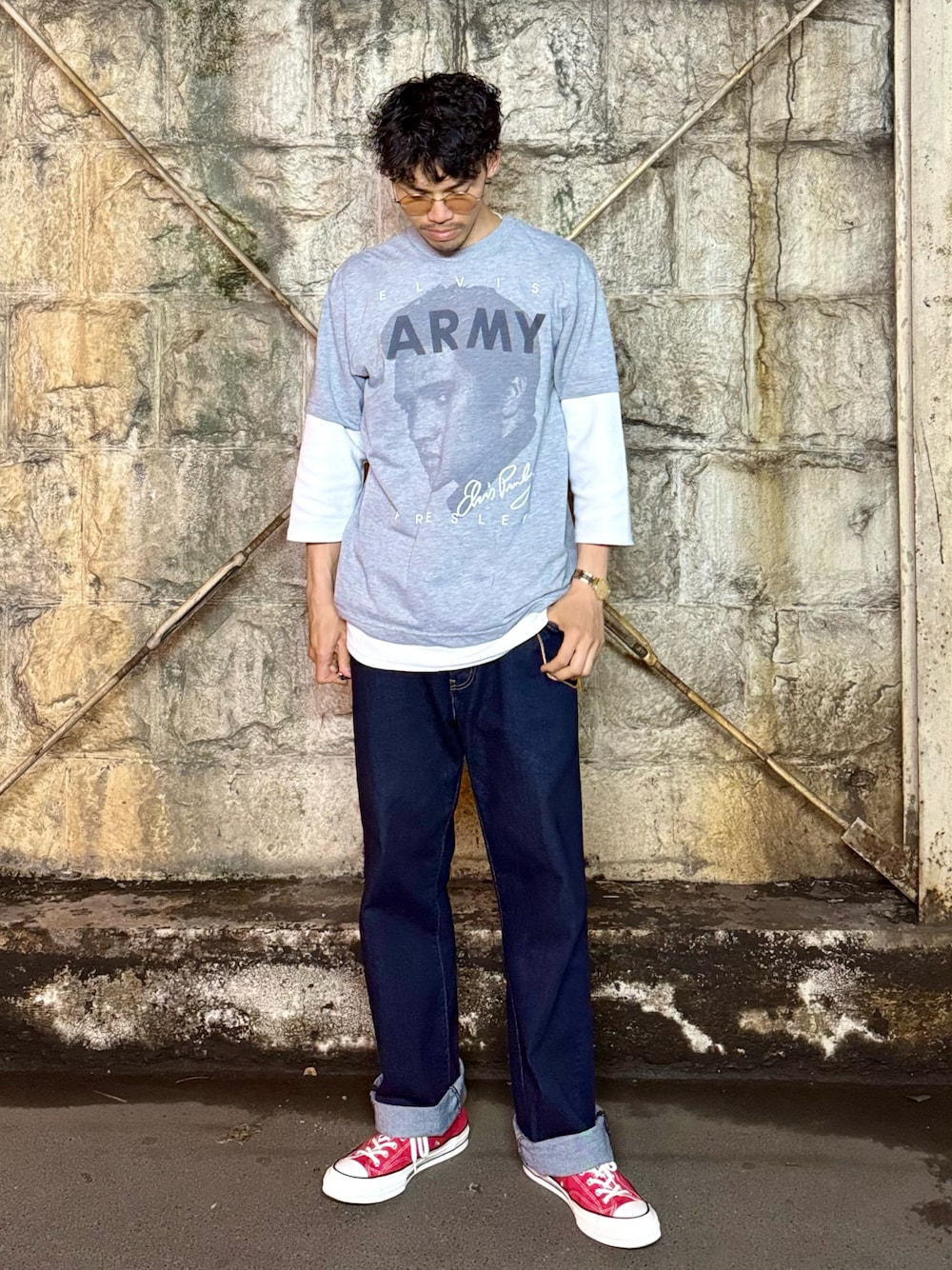 ミリタリー古着のリメイクTシャツにレイヤードさせてアメカジスタイルにしました♪