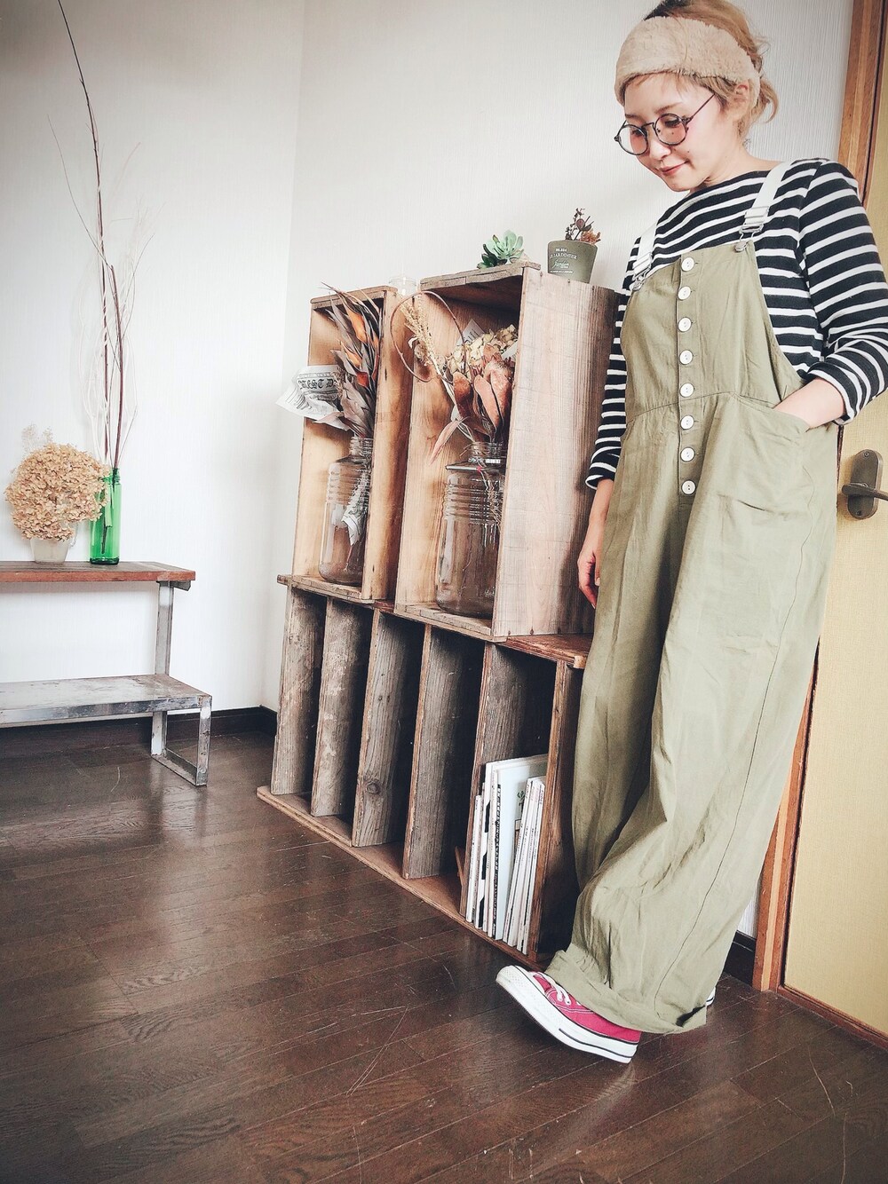 花屋になりたくてのサロペット/オーバーオール「配色ボタンワイドパンツオールインワン2871」を使ったコーディネート