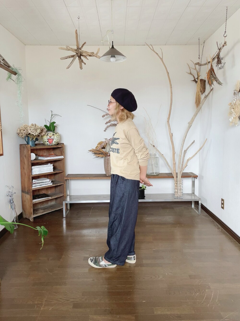 花屋になりたくてのハンチング/ベレー帽「【override】Two-Sided Mil Beret BS / 【オーバーライド】ツーサイド ミリタリー ベレー」を使ったコーディネート