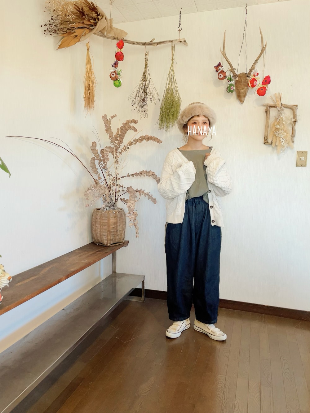 花屋になりたくての帽子「ニット帽?ファーの帽子?」を使ったコーディネート