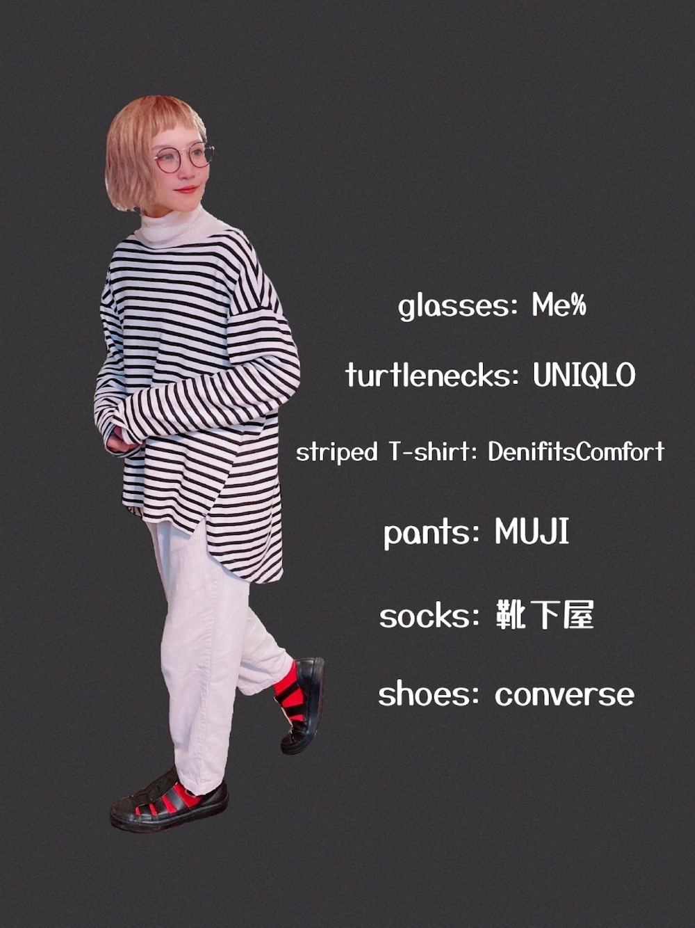 DenifitsComfortUNIQLO¥3,289無印良品CONVERSE¥16,500靴下屋¥770Me%¥1,650この画像から似たアイテムを検索できます1,3381291お気に入り (28)910花屋になりたくてさんへのコメントNO COMMENTコメントはスマートフォン用アプリからご利用できます着用アイテムDenifitsComfortDenifitsComfortTシャツ/カットソー (その他)Tシャツ/カットソー探すZOZOTOWNで探す¥3,289UNIQLOUNIQLOニット/セーター (ホワイト系)ニット/セーターサイズ:M着用コーデ:1624件探すZOZOTOWNで探す無印良品無印良品その他パンツ (ホワイト系)その他パンツ探すZOZOTOWNで探す¥16,500CONVERSECONVERSEサンダル (ブラック系)サンダルサイズ:24.5着用コーデ:15件探すZOZOTOWNで探す¥770靴下屋靴下屋ソックス/靴下 (レッド系)ソックス/靴下サイズ:22.0~24.0cm着用コーデ:158件探すZOZOTOWNで探す¥1,650Me%Me%メガネ (ブラウン系)メガネサイズ:FREE着用コーデ:7件探すZOZOTOWNで探す花屋になりたくてのTシャツ/カットソーを使ったコーディネート🧦コメントを表示2023.2.12着用ブランドUNIQLO無印良品CONVERSE靴下屋Me%タグ#ほめられ本命コーデ#UNIQLO#タートルネックニット#タートルネック#ボーダートップス#赤い靴下#靴下屋#靴下 × サンダル#コーデュロイパンツ#コーデュロイ#めがね#メガネ女子#おしゃれさんと繋がりたいモデル情報女性・155cmミディアムヘアー似ているアイテムUNIQLO × ニット/セーター無印良品 × その他パンツCONVERSE × サンダル靴下屋 × ソックス/靴下Me% × メガネ関連フォルダオシャカワ🧢メンズライクコーデ花屋になりたくて@hal0408 / 155cm / WOMEN / ミディアムヘアー0コーディネート0フォロワー注目のコーディネートアプリでもっと見るもっと見る