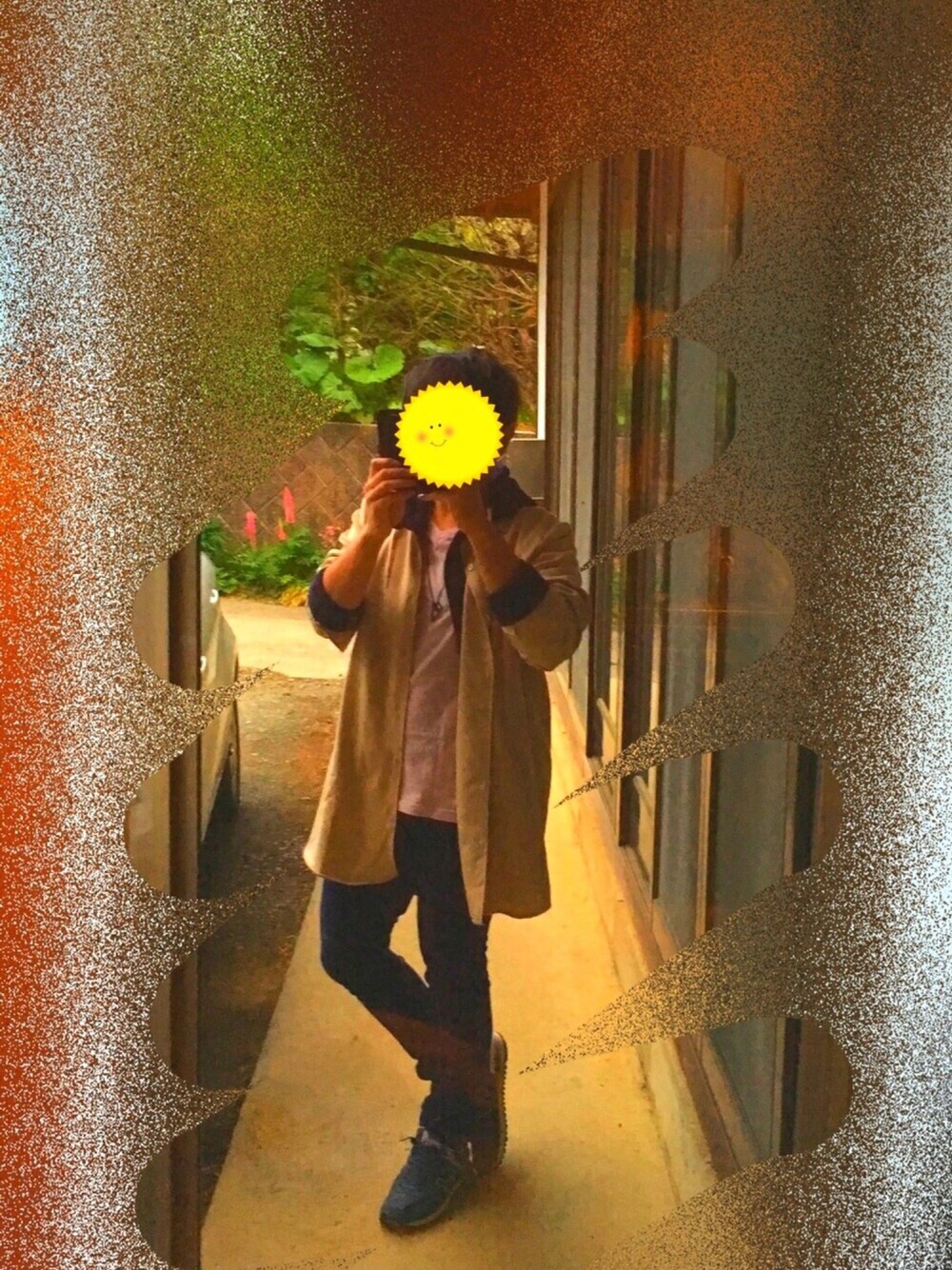 夕方に撮ったから暗い…😬 モノマートのロングオーバーオープンカラーシャツ?背が低くて体型も変だからなかなか着こなせない😬 でも、キタイカラキルンダ😬笑