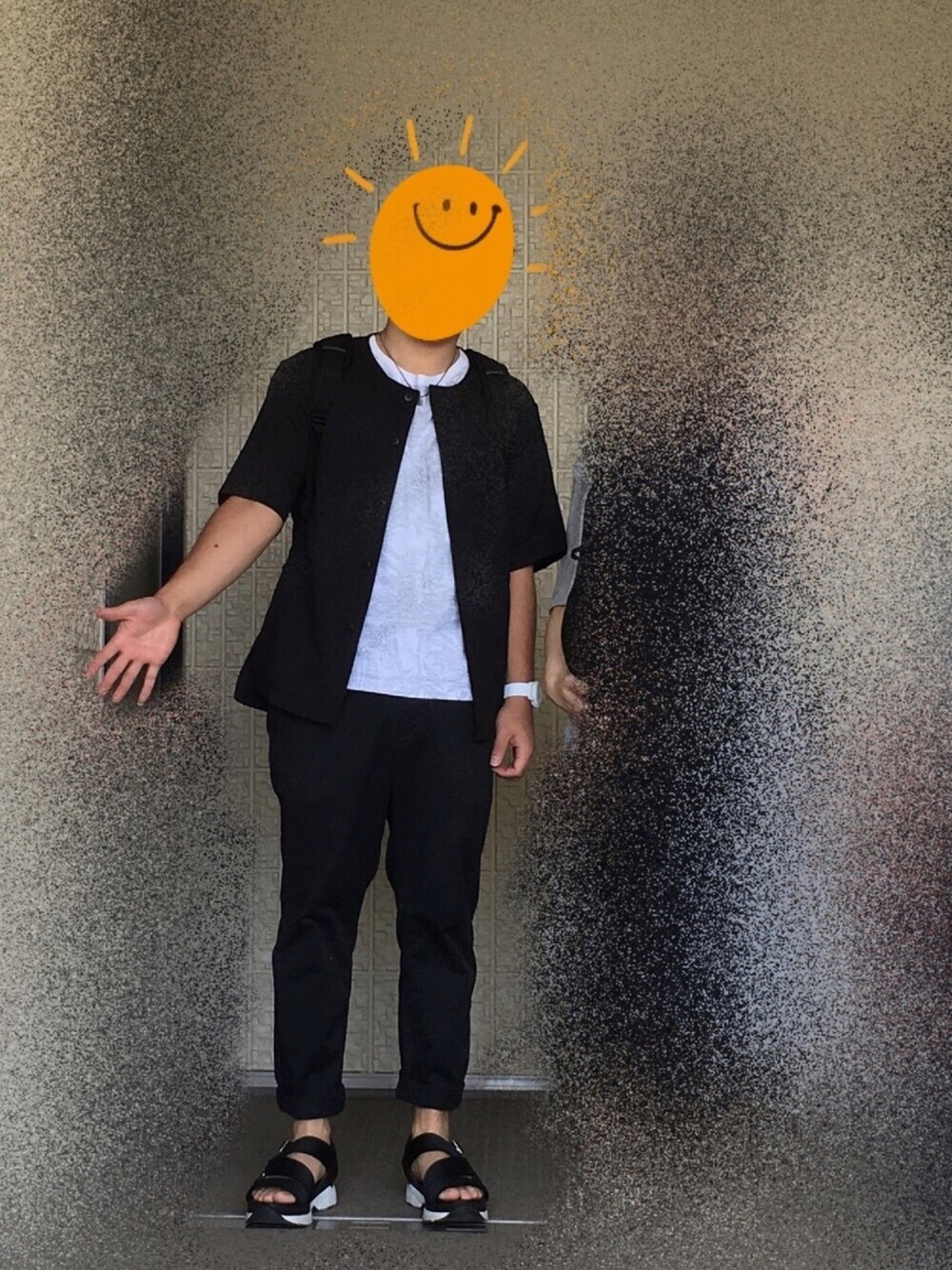 モノトーンコーデ😶 だけど、白Tはちょっと ボタニカル柄です😶 黒ちょっと暑い… 良かったらどこかにポチッとしてください😶