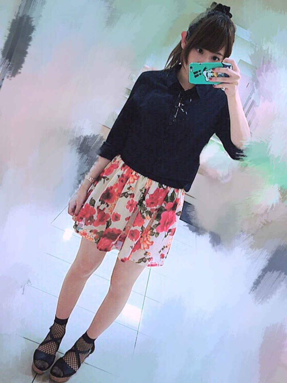 ご観覧ありがとうございます! そろそろ夜寒くなってきましたね₍₍ ᕕ(´ ω` )ᕗ⁾⁾ 今回は持ってるものでちょっと黒系で揃えてみました!この花柄のスカートどこで買ったか忘れちゃったのですがとってもお気に入りです☆。.:*・゜ 足元のネットでちょっといつもと雰囲気が違う感じになれたかな?