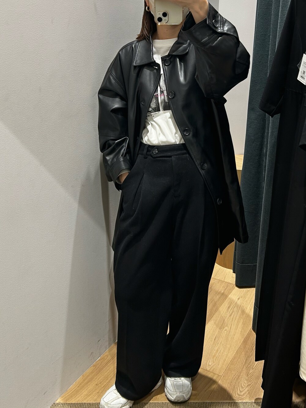 お気に入りのビューティアンドユースのロンTにちょっと肌寒かったのでレザーアウターを着てお出掛け🖤🤍