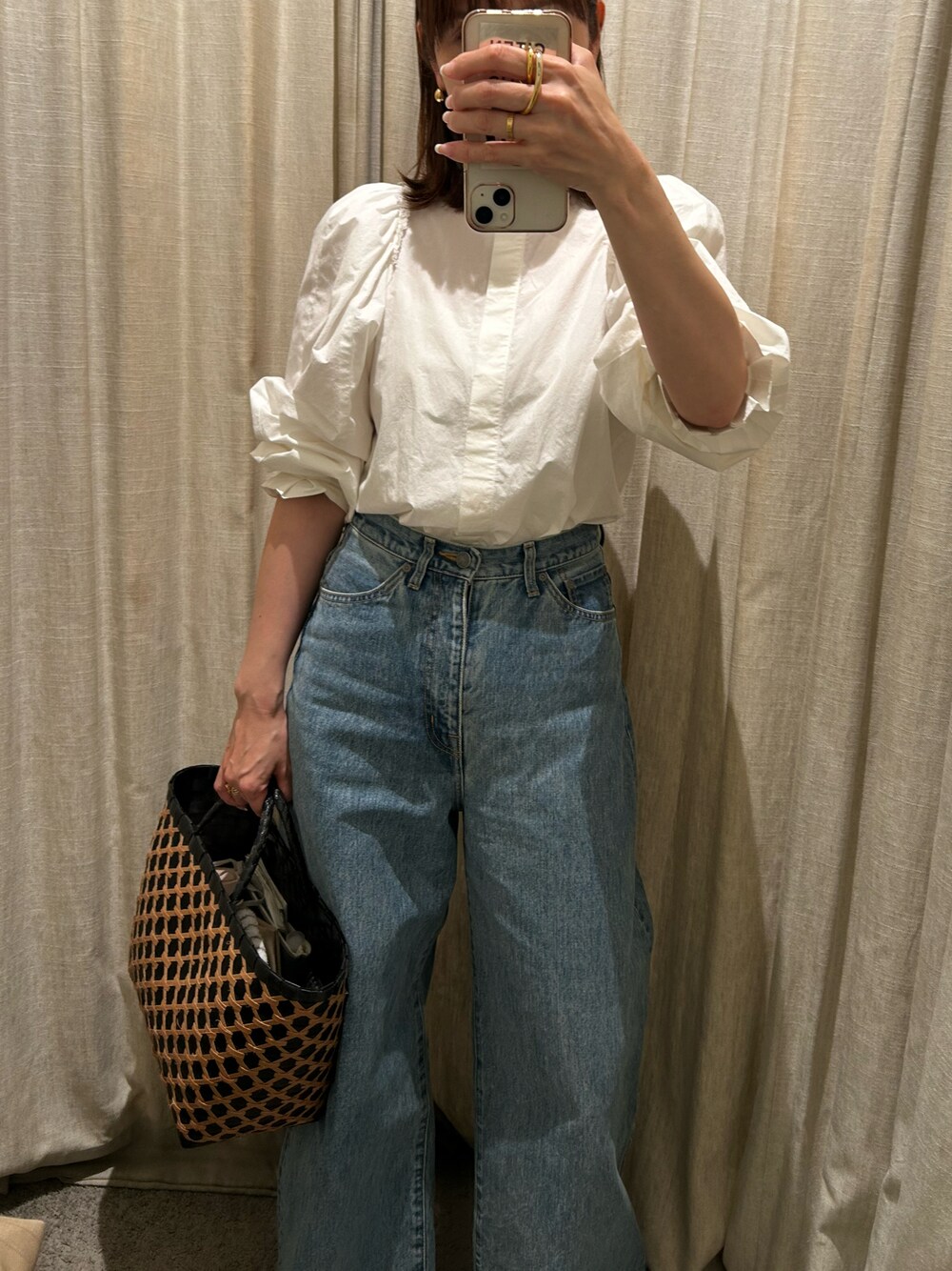 ワイドシルエットが可愛くて履きやすいデニムです💙今日はtodayfulの大人な甘めブラウスを合わせてみました👚