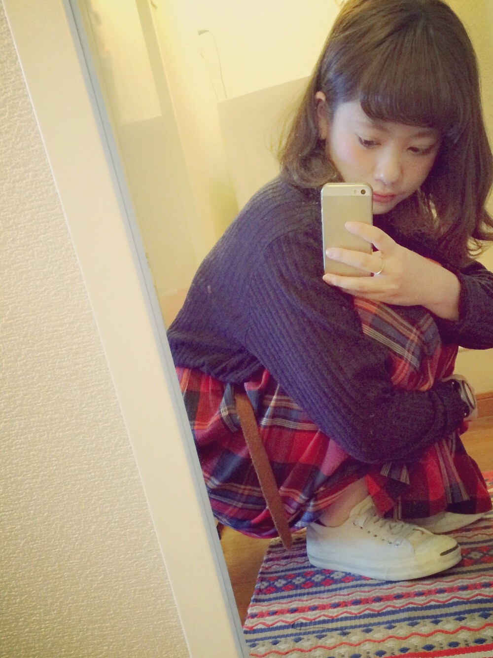 ひさびさの wear (´-`).。oO 放置しすぎておりました。 ちょっと前のコーデですが 載せてみます。 すかーとはWEGOの古着で買いました👗 赤チェック かわいい。🐻❤️