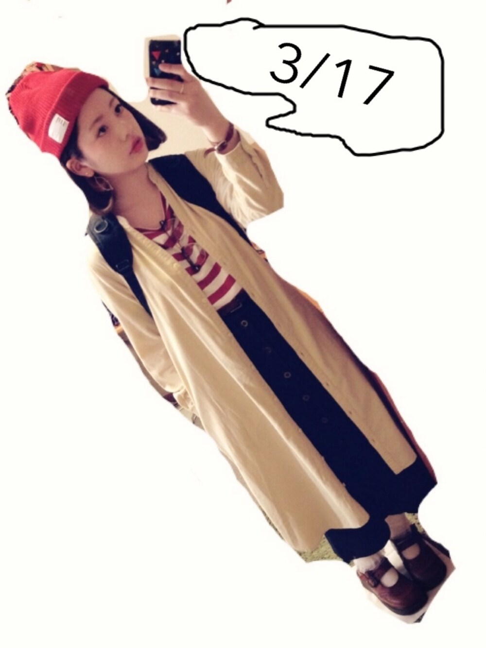 ボーダーと迷彩の組み合わせがすきです。 ガウン / niko and… トップス / LOWRYS FARM スカート / used リュック / used くつ / Dr.Martens(used) くつした / american apparel