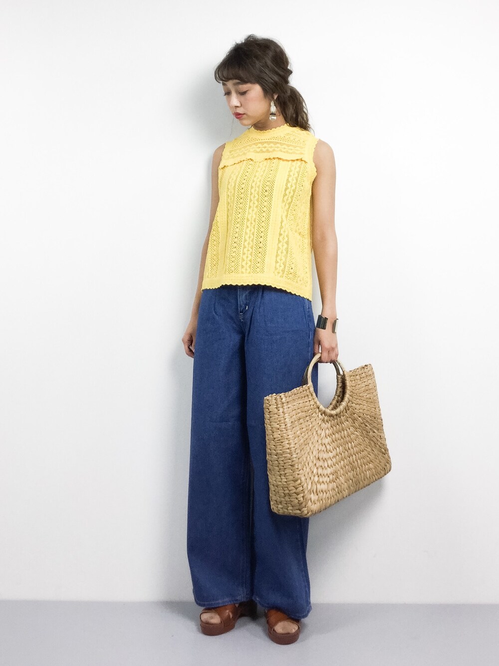 teraのデニムパンツ「【美人百花 6月号掲載】【otonaMUSE 4月号掲載】 Lee×安西こずえ/別注タックワイドパンツUSED」を使ったコーディネート