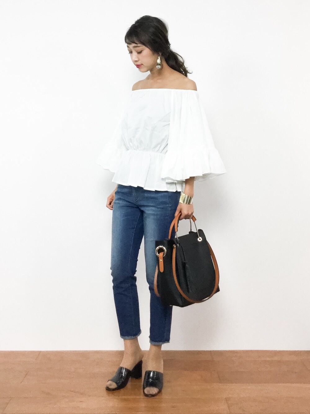 teraのデニムパンツ「・デニムフリンジクロップドスキニーパンツ」を使ったコーディネート