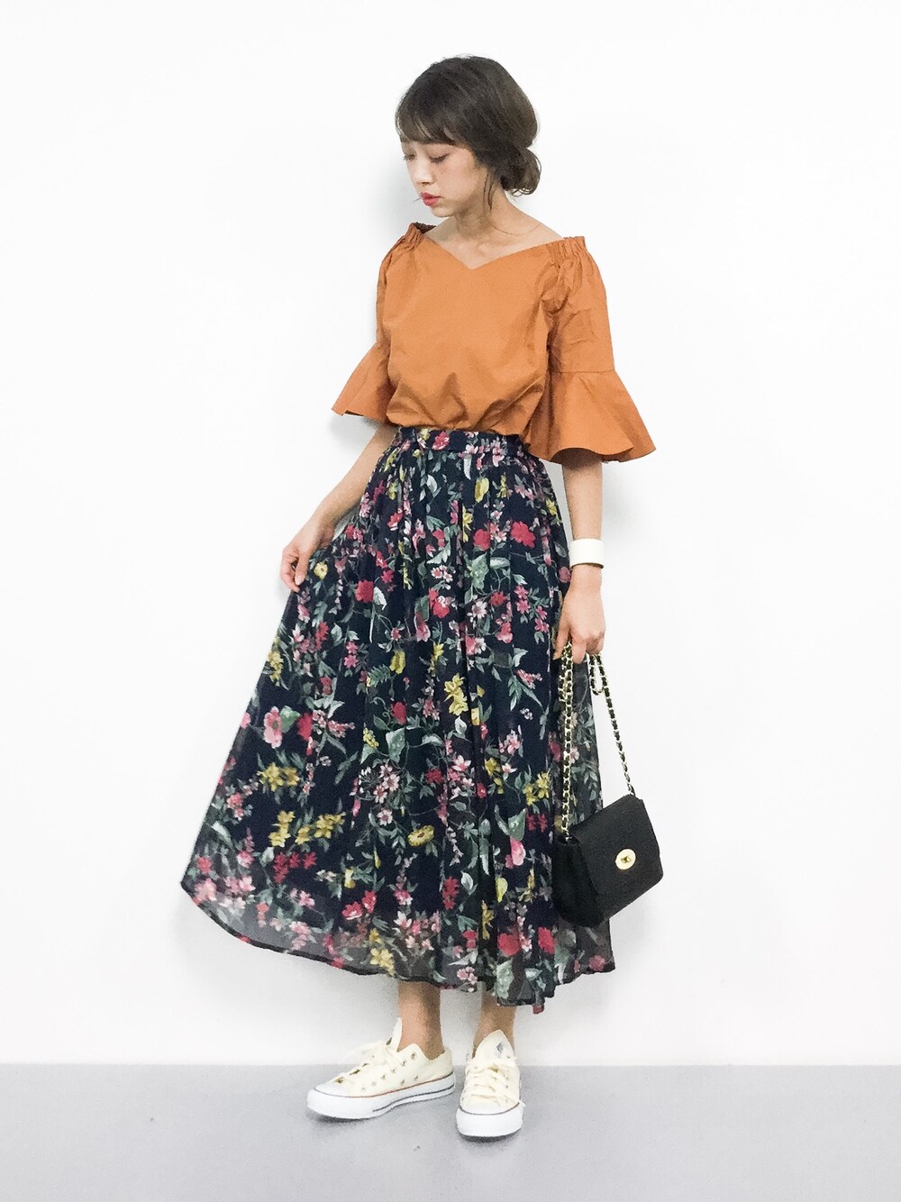 着用コーデ:13件teraのスカート「『7/13ヒルナンデスご紹介商品』花柄シフォンロング/スカート-2017SS-」を使ったコーディネート