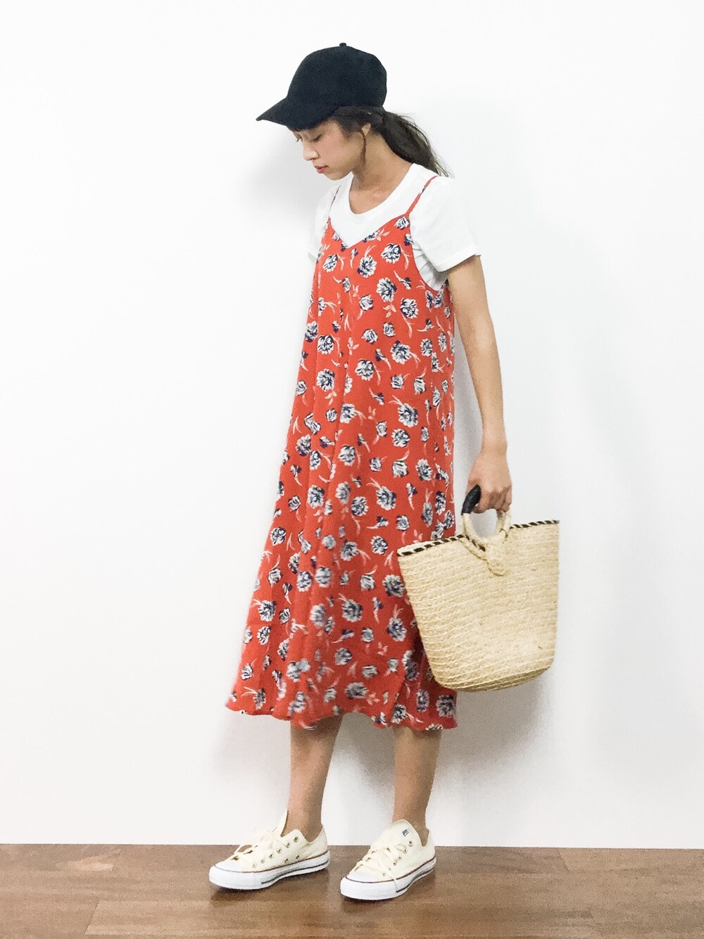 teraのワンピース「sugar spoon ・SET2点 花柄キャミワンピ×Tシャツ」を使ったコーディネート