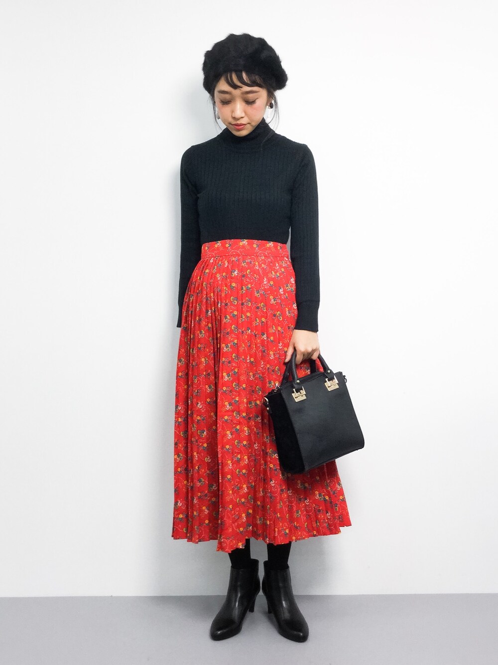 ◎花柄スカートの冬カジュアルコーデ◎