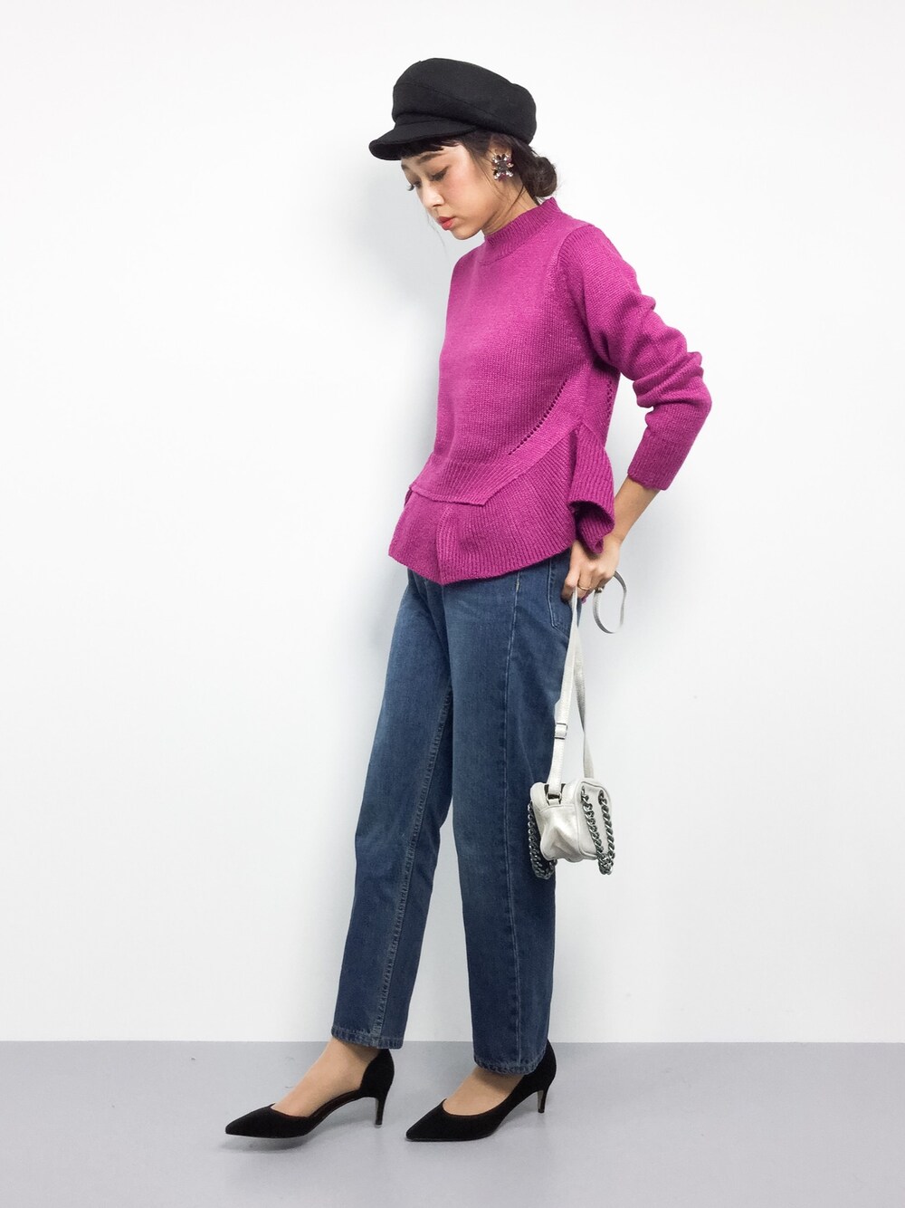teraのニット/セーター「ボリュームフレアぺプラム後ろ長めデザイン長袖プチハイネックサイドヘムニットトップス」を使ったコーディネート