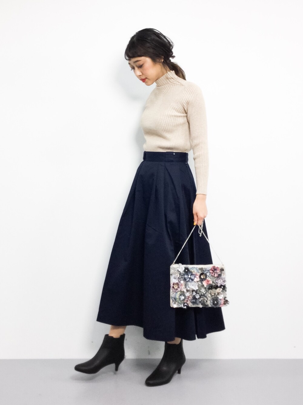 teraのニット/セーター「【カラバリ6色】しっかり厚手ボトルネックセンター切り替えリブ編みニット長袖トップス」を使ったコーディネート