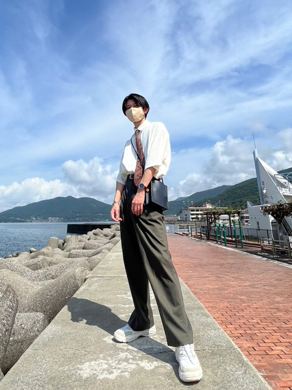 いつも見て頂きありがとうございます! 古着のネクタイを使ったコーデです👔 革靴と合わせるのもいいですが、綺麗めになりすぎるのでスニーカーで外してみました👟 まだ暑いので秋服を着れないのが残念、、🍁 コーデが良ければ、いいねお願いします🙏