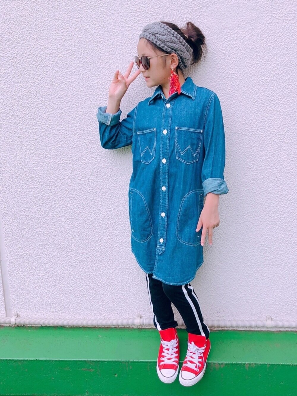 おはようございます☀️ #❤️&✌2018 秋コーデ☆彡.。 ぶんぶんmadeのターバンにiconyちゃんmadeのイヤリング。 どちらもフォロワーさんのhandmade✨ このセットで使うのけっこう好きです♡ デニムシャツワンピ150なので今年もいい感じです♡♡ ラインレギンス合わせで今年らしく✨ 昨日撮りました📸 これから、試合なので✨🏀 募金活動には積極的です😄👍 見に来ていただきありがとうございます♡♡♡♡♡♡