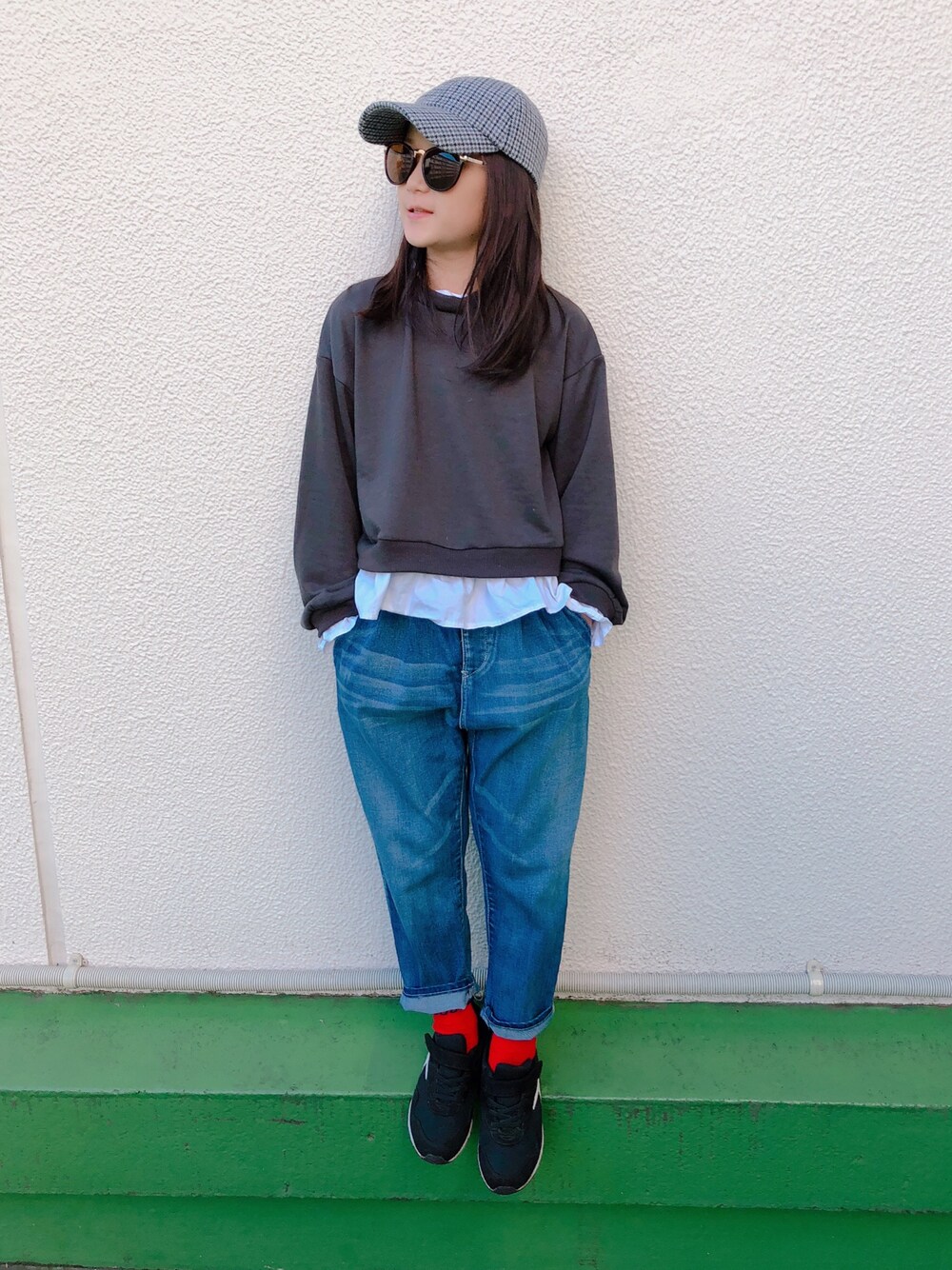 HALULUのキャップ「チェックCAP」を使ったコーディネート