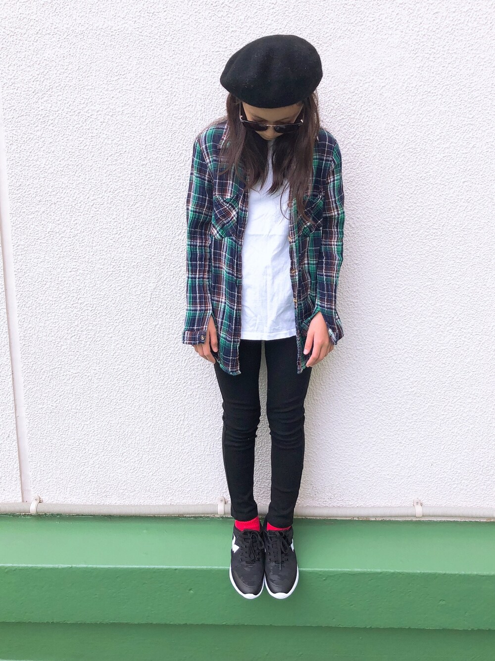 おはようございます🌞 木曜日学校コーデ꙳★*゚ ベレー帽、ニット帽出しました♡ チェックシャツは裏地が茶×白のブロックチェックで開けて着るとかわいい♡ デビさんのレギパン150でピッタリ♡ 最高にいいです! スニーカーが24になりました😵😵😵 増税前に買ったけど……3足履けなくなった😭😭😭 見に来ていただきありがとうございます♡♡♡♡♡