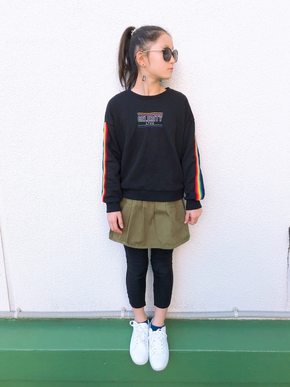 HALULUのスウェット「袖レインボートレーナー」を使ったコーディネート