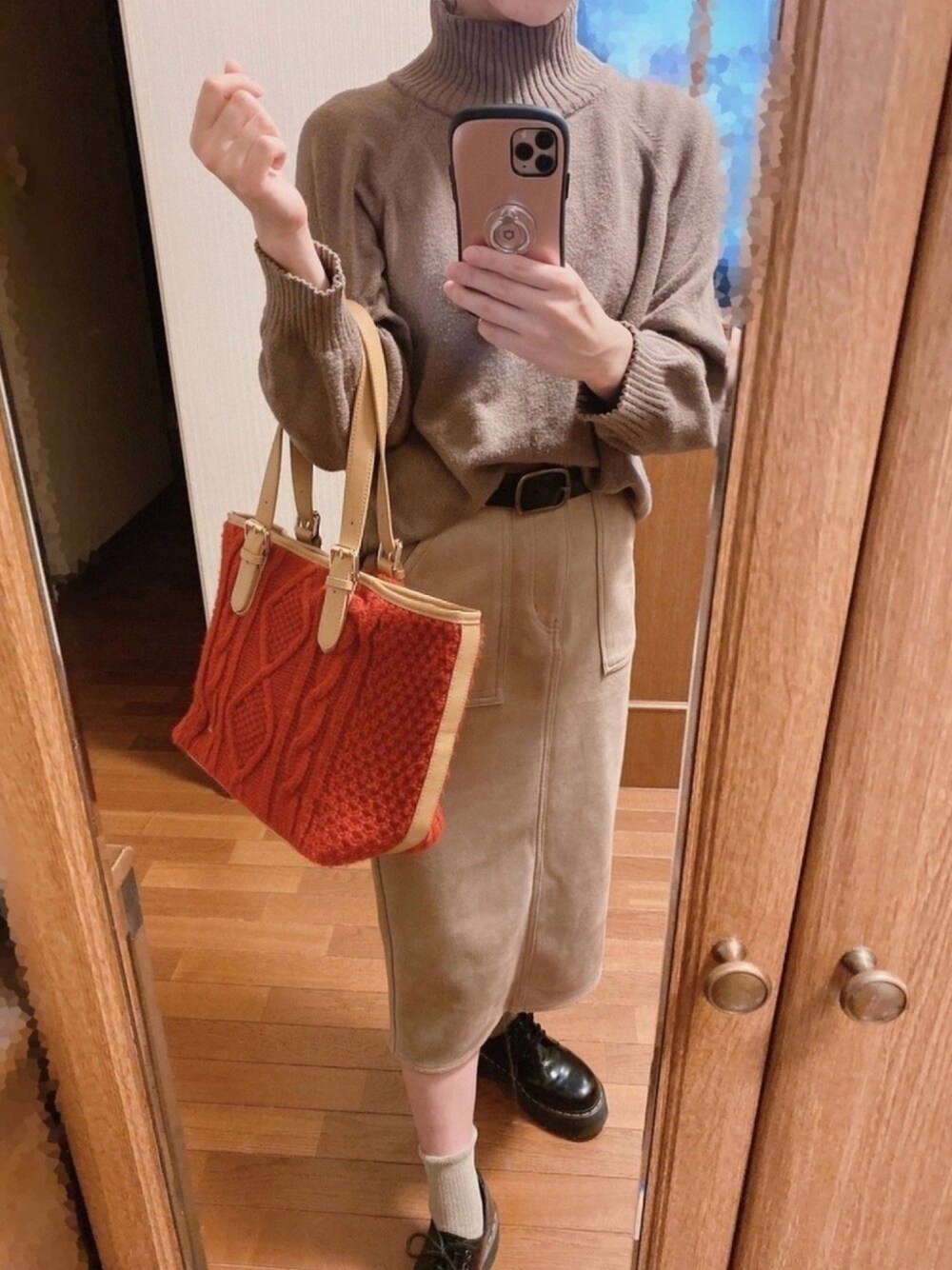 春のニット/セーター「ストレッチハイネックルーズセーター」を使ったコーディネート