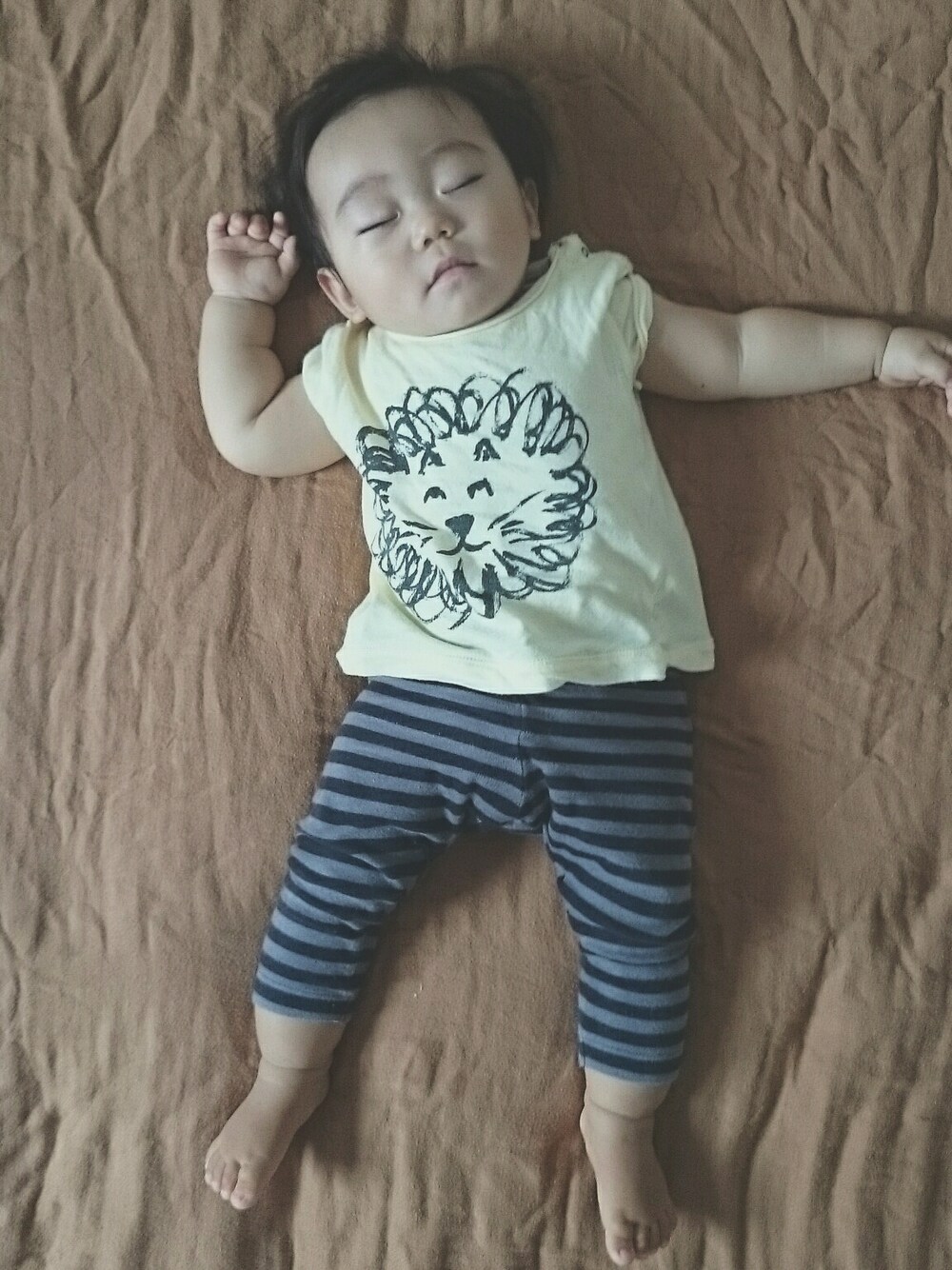 イエロー系のトップスを着用したキッズの秋コーディネートの1枚目の写真