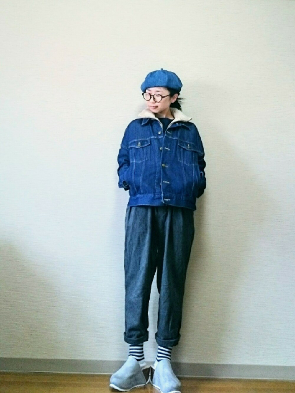 はらのハンチング/ベレー帽「デニムベレー帽9794」を使ったコーディネート