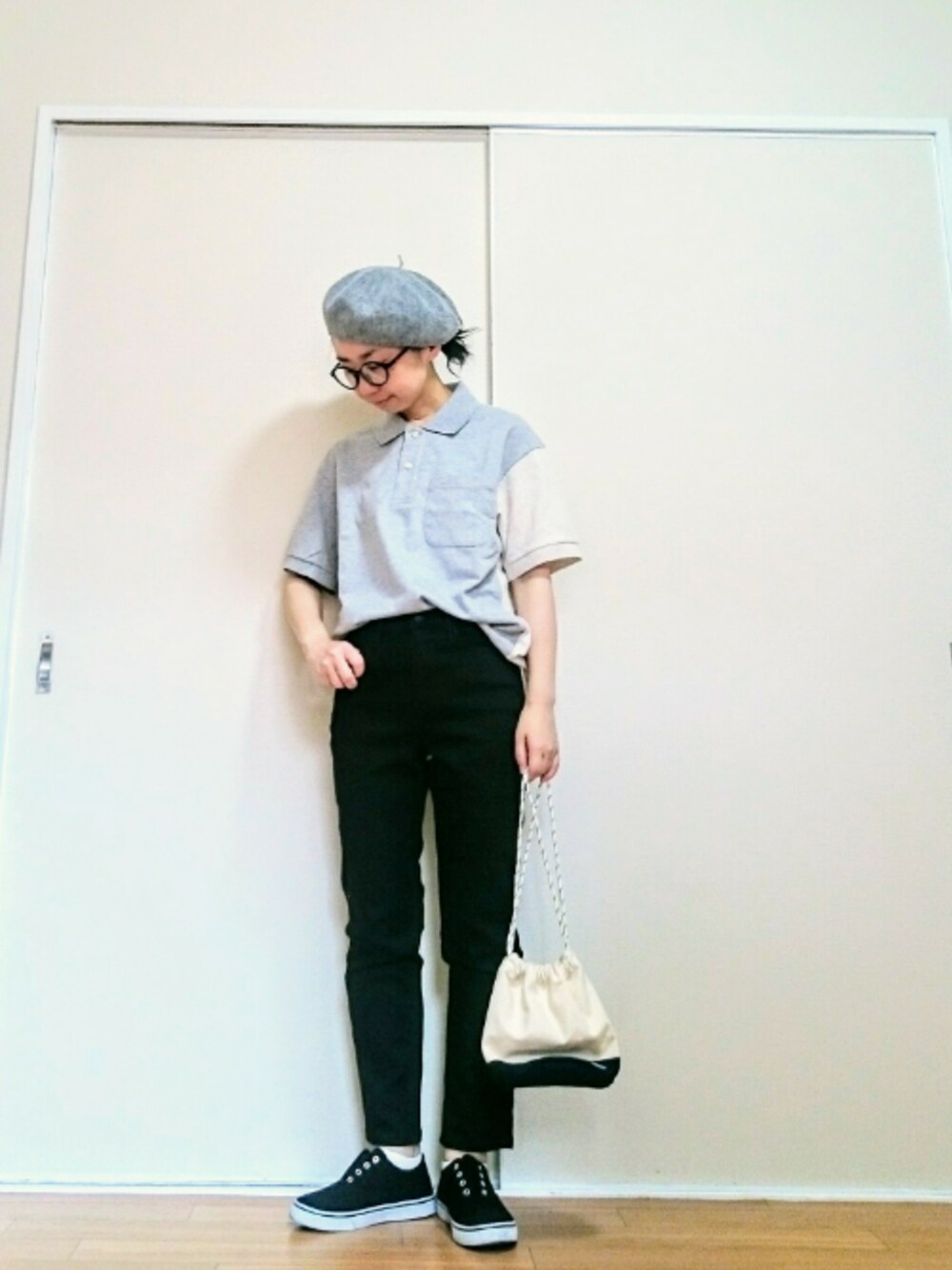 おはようございます☺ ユニクロ×EngineerdGarments のコラボポロシャツ グレーとベージュの配色が可愛くて🙆
