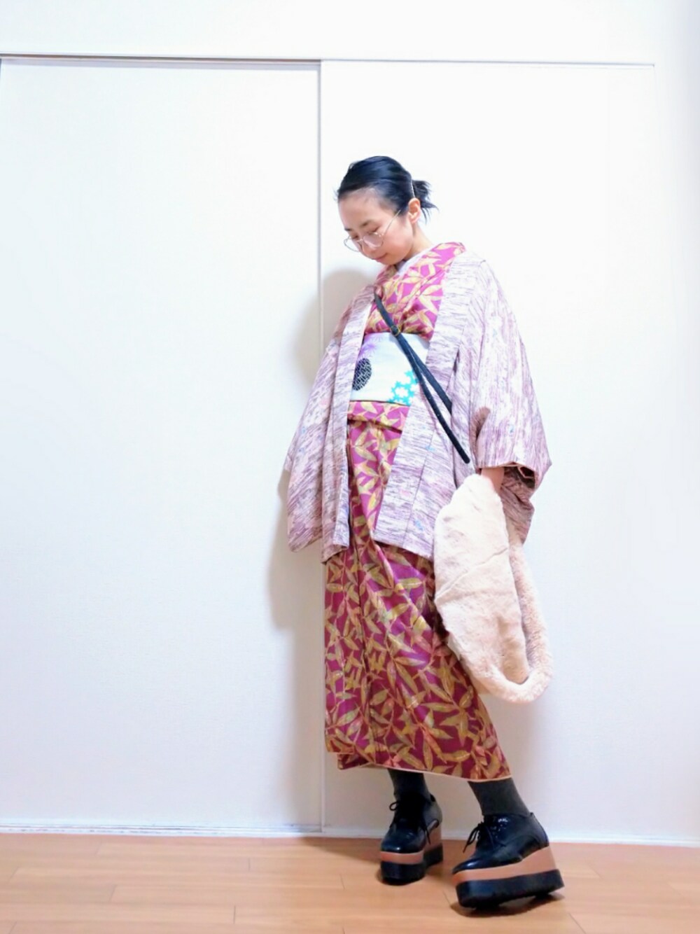 はらのショルダーバッグ「フェイクレザーXフェイクスエードミニショルダー」を使ったコーディネート