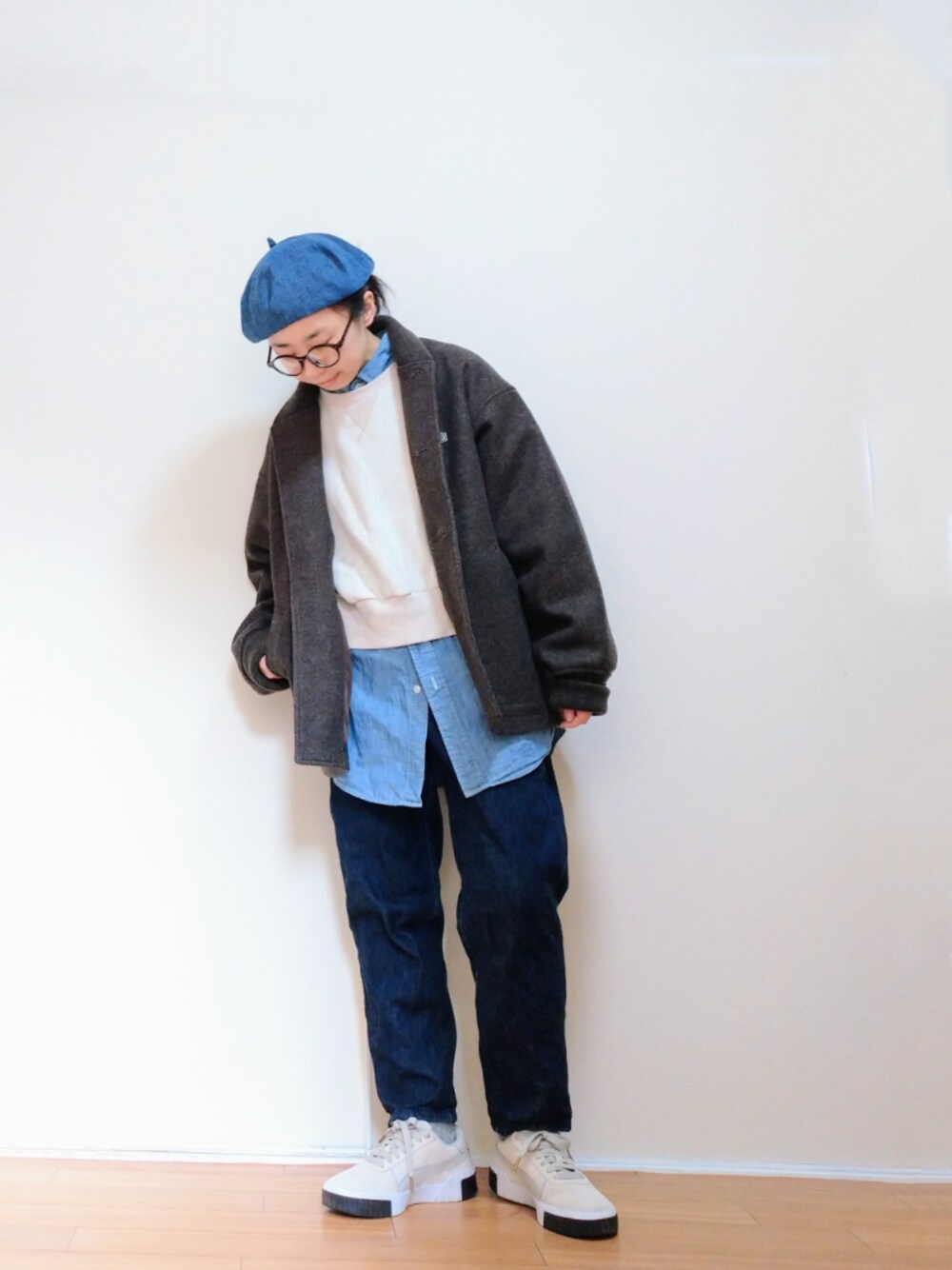 おはようございます☀️ 久々ベレー帽 薄色デニムで春み 🙆
