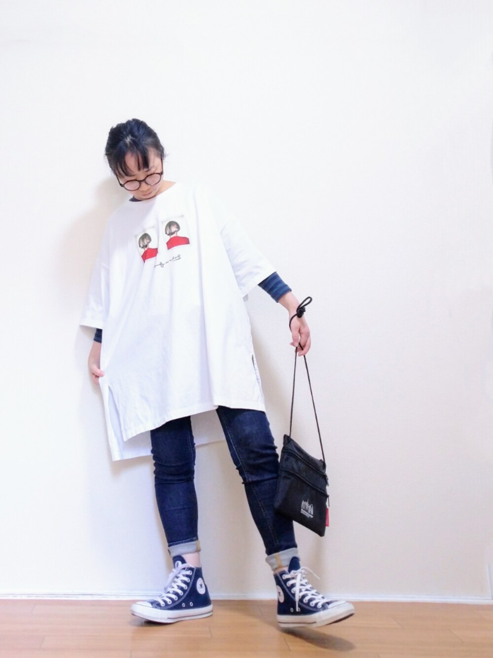 おはようございます☀️ ユニクロUTの可愛いやつ👕 もとからオーバーサイズですが、 XLにしてよりオーバーに 🙆