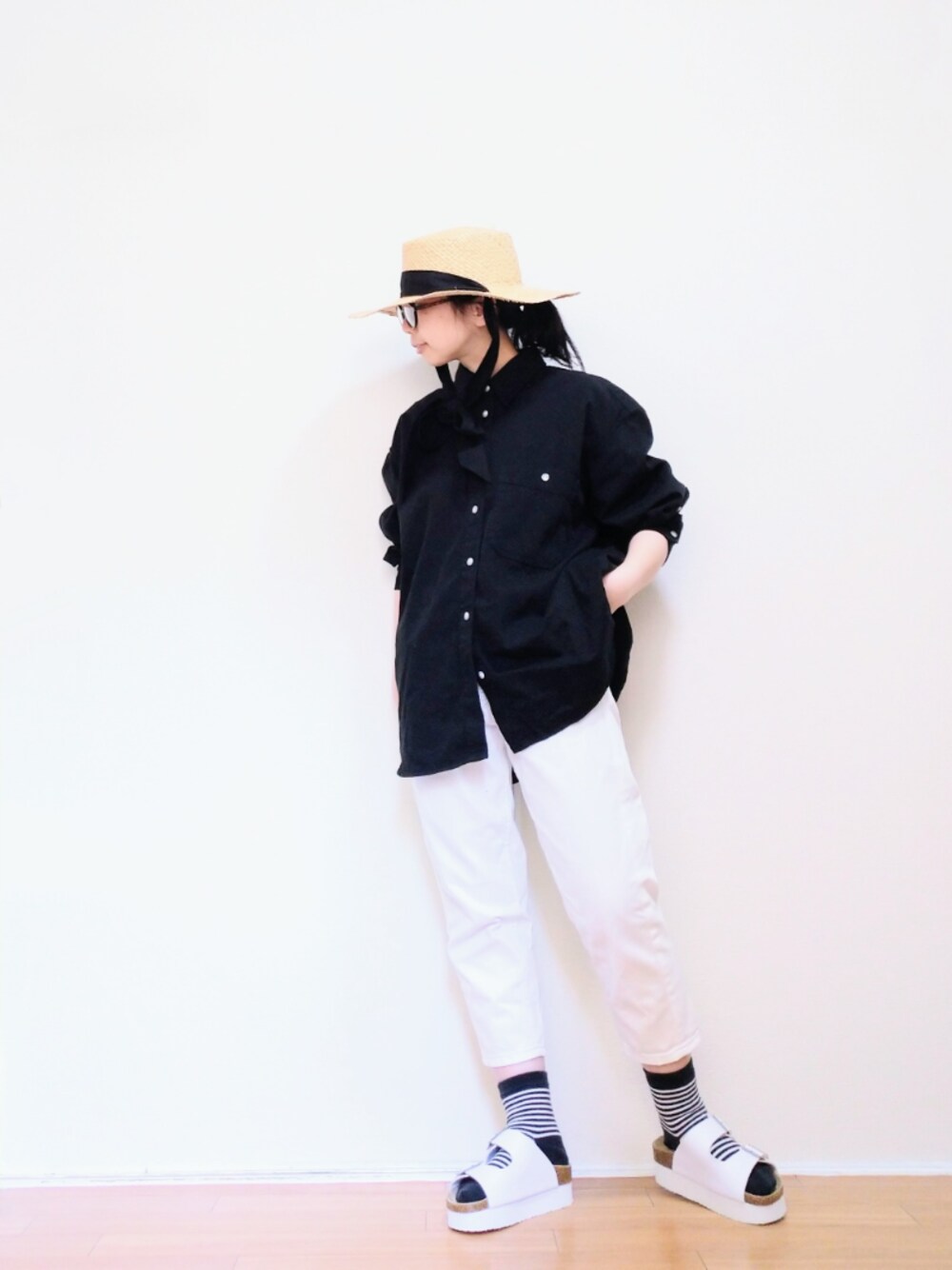 おはようございます☀️ 去年から気になってた、 リボンが長ーい麦わら帽子 …ええ、シャツのせいでほとんど見えてませんが、 カワイーのです 🙆