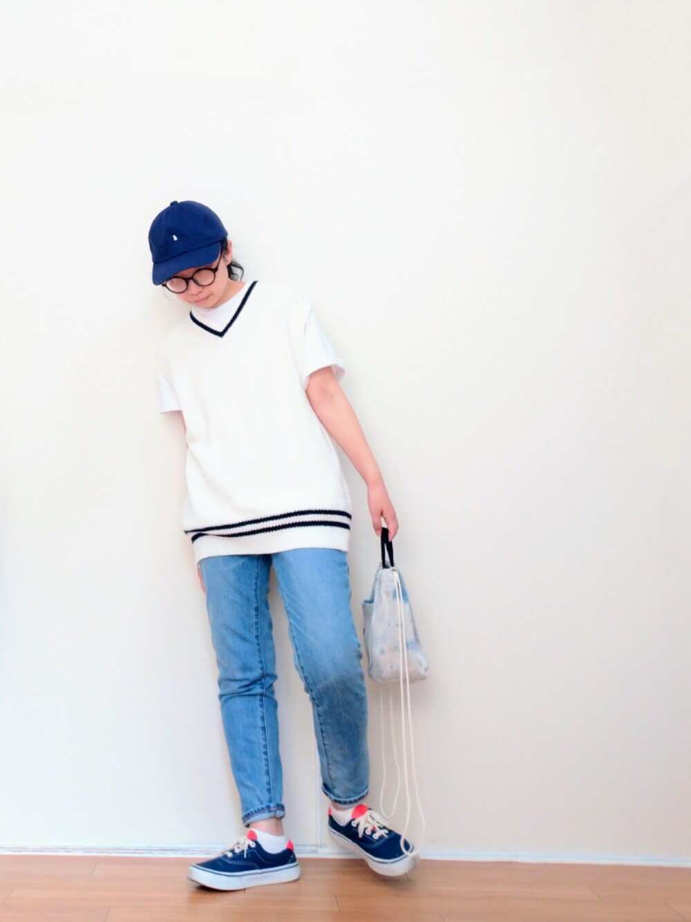 おはようございます☀️ ユニクロの オーバーサイズVネックベスト 形可愛いです😆 Sサイズ着てます 🙆
