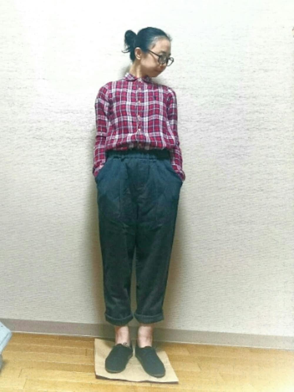 はらのシャツ/ブラウス「ダブルガーゼチェックシャツブラウス」を使ったコーディネート