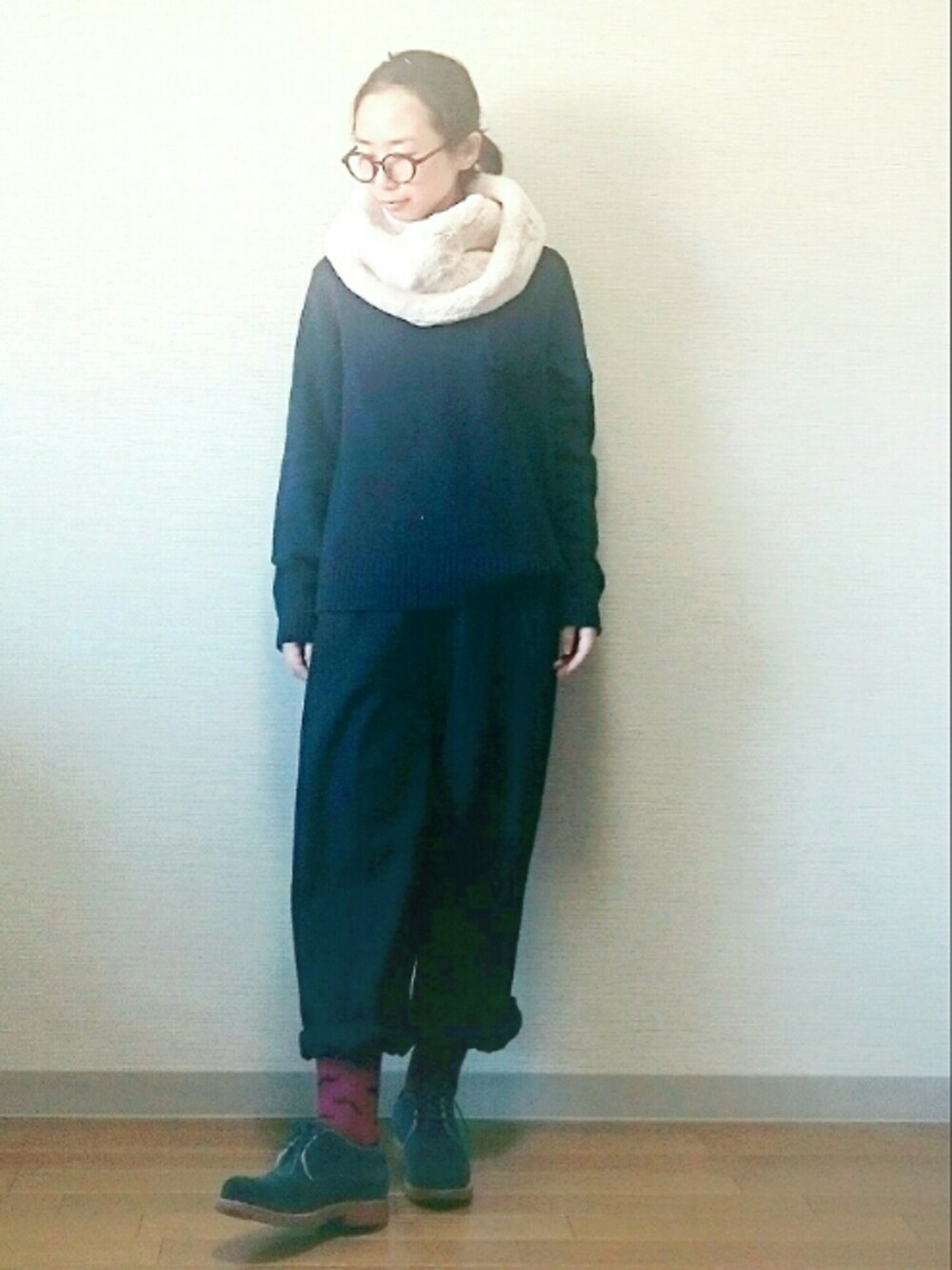 お早うございます🙋 今日も寒さ、ちょっとゆるむみたいです😄 本日は、オールネイビーに小物で色味をプラスです。 タイガーのヒゲ靴下は作りもしっかりしてて、あったかいです🙆