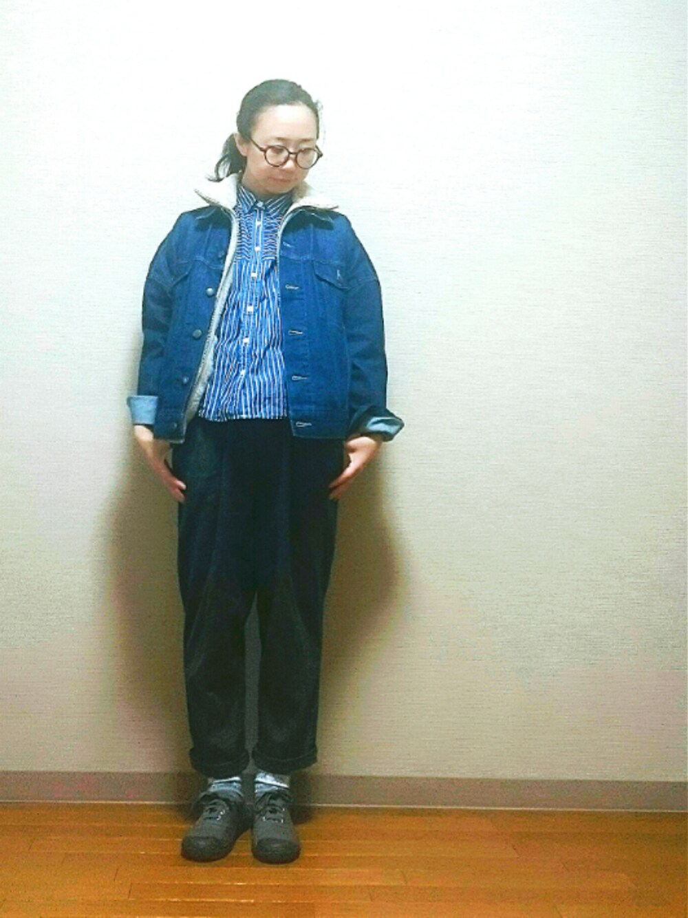 おはようございます🙋 今日からまた気温が下がるみたいですね🐧 本日は、フリースにGジャンを重ねてみました😄 ボア付きのGジャンカワイイなー欲しいなーと思ってたんですけど、 もし買ったら冬だけしか着られへんのとちゃうん? というケチケチ根性から重ね着を思いつきました🙆 久々にユニクロのフリース買ったんですけど、やっぱあったかいしフラッフィーフリースというらしいんですけど、肌触りも良いです👍