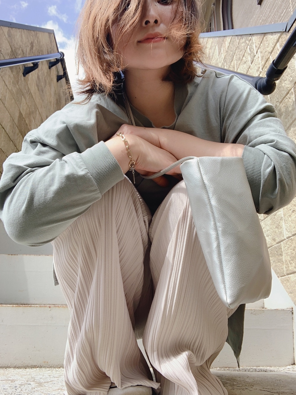 こちらの地域は、ようやく暖かくなってきたところです😂🍀桜はまだです😂🌸 今日は実家へ🏡 大好きなミントグリーンとシルバーのバッグの組み合わせでラフに☺️風も気持ちよくてほんとにいい日☺️