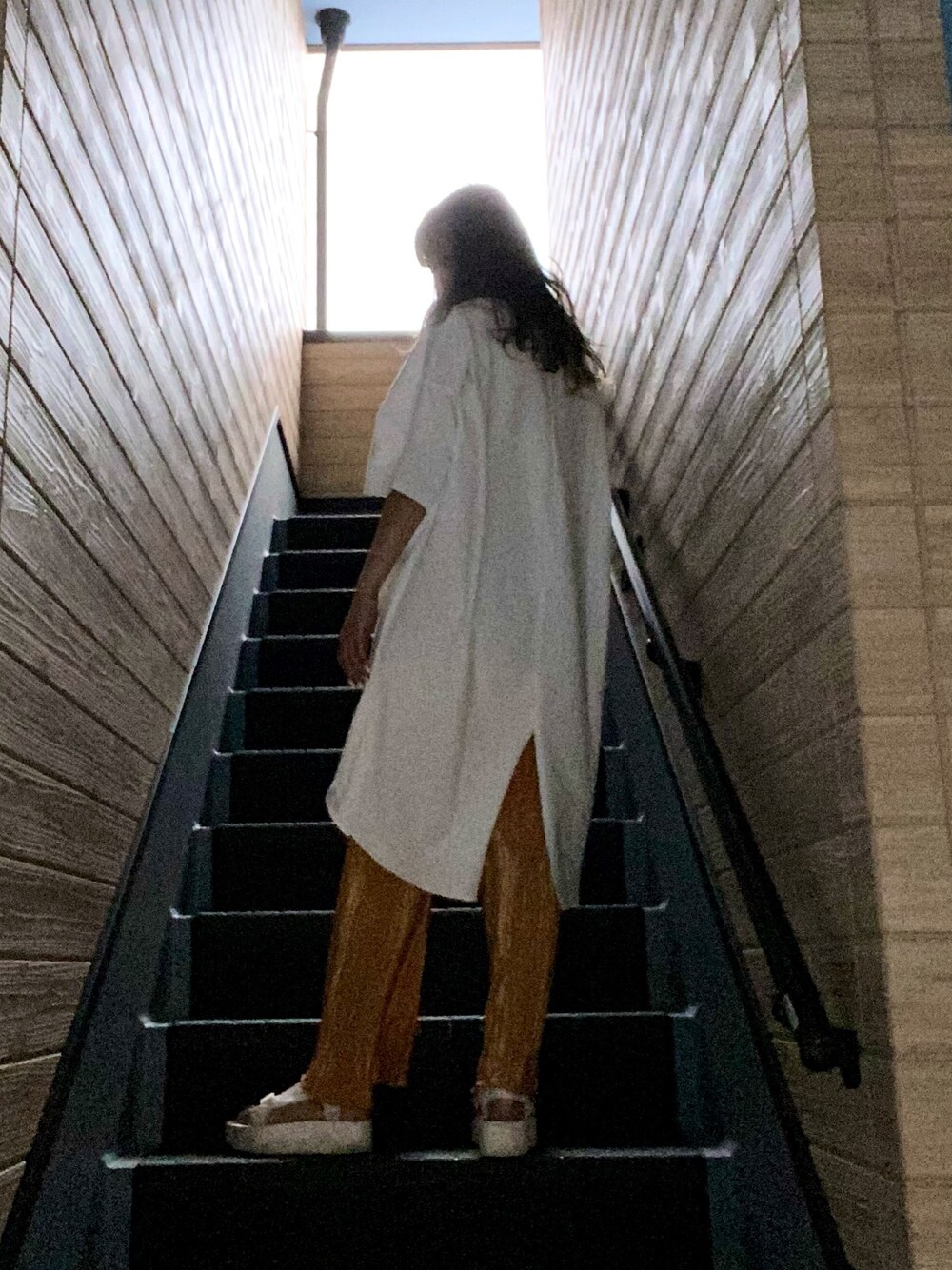スリットがかわいいビックTシャツ🤍 トレンドのプリーツパンツと合わせた🧡