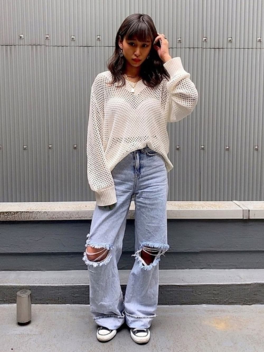 メッシュニットがざっくりでかわいい🤍