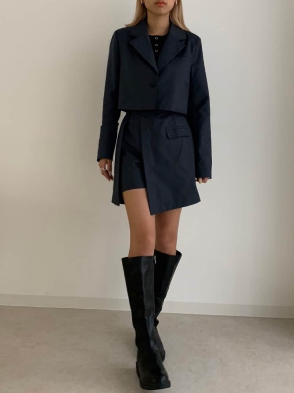 ALL BLACK🖤 セットアップはマストで、それぞれに着回しのきくジャケットとキュロットスカート!