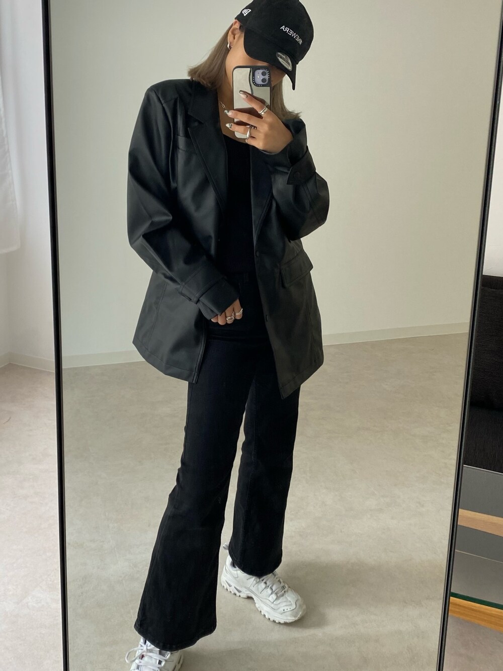 はるちょすのテーラードジャケット「【Avvenente】フェイクレザージャケット」を使ったコーディネート