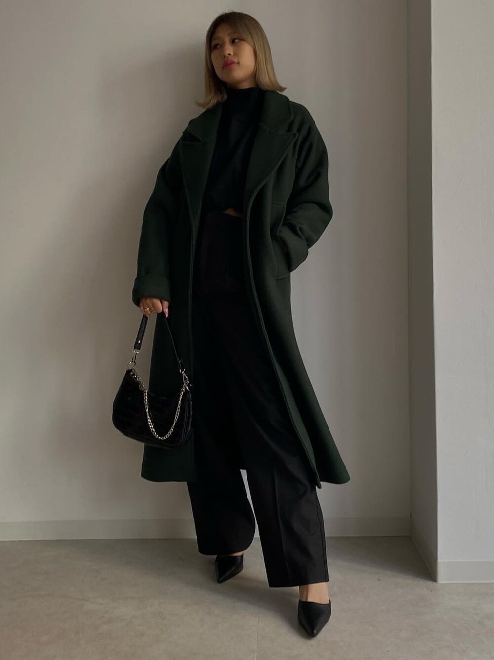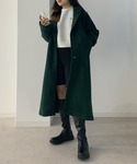 \ダークグリーンのロングコート/ 取り入れやすい色味のグリーンで、 しっかりロング丈が嬉しい1枚! 襟が大きめで小顔効果も🤍