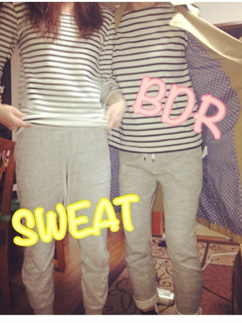 いつかの出来事。 家帰ったら.... お風呂あがりのお姉ちゃんと おんなじ格好だった件。笑 トレンチ開いて変態じじいみたい。笑 スウェット×ボーダー☻